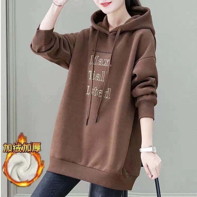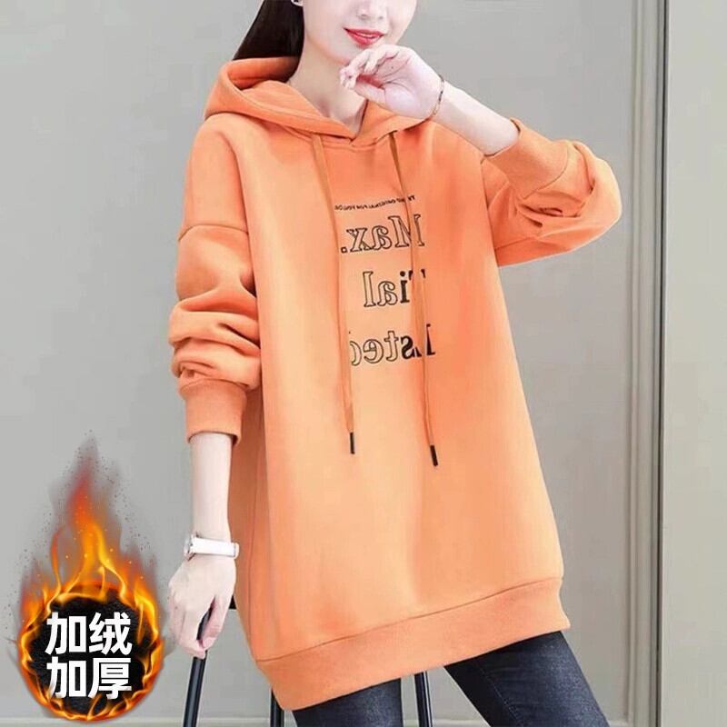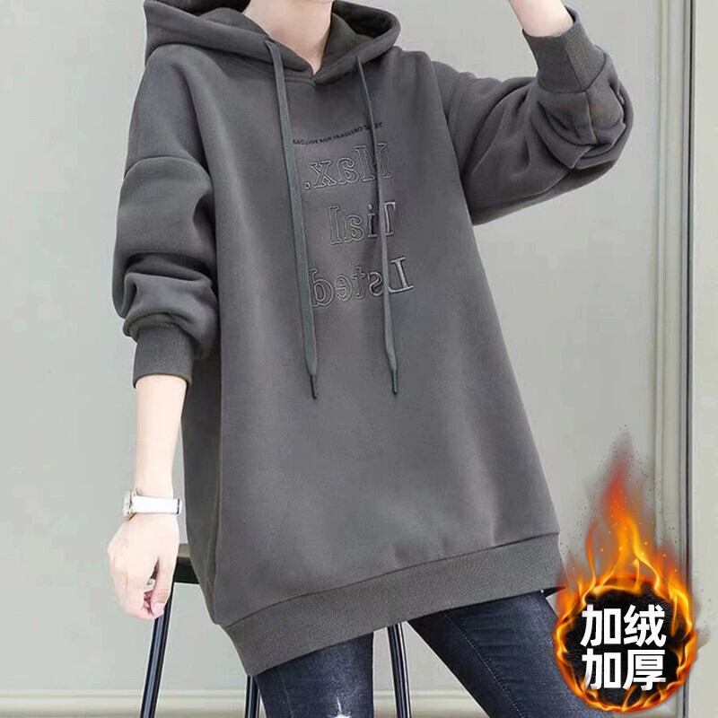 Eign Trade 輸出ブランドテールグッズ女性のベルベット肥厚フード付きスウェットシャツジャケット緩い大きいサイズのミッドレングストップパーカー 大きめサイズ sine2788744577