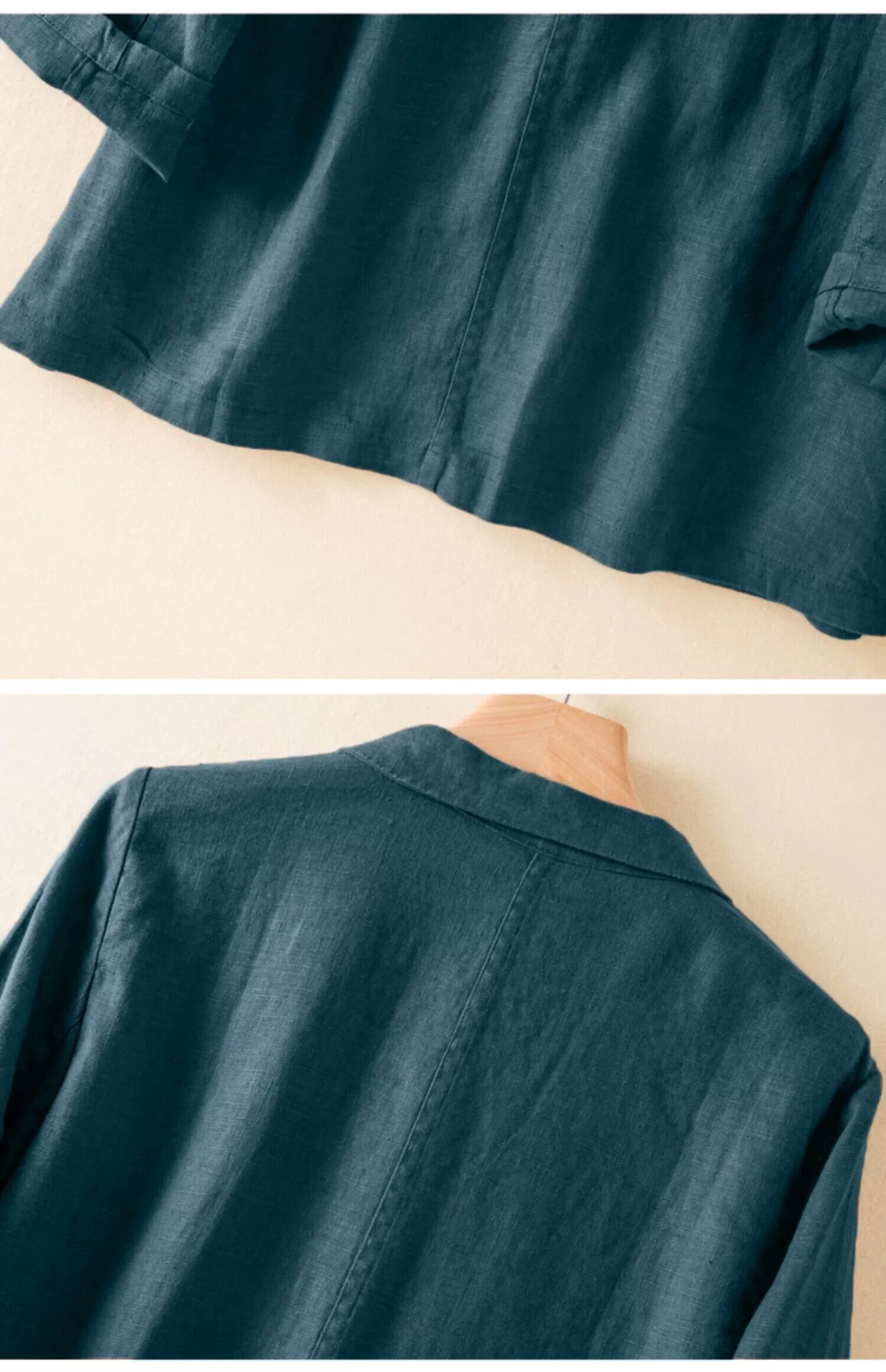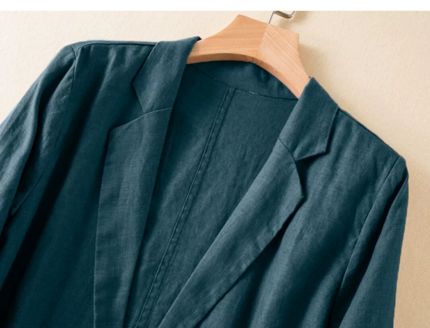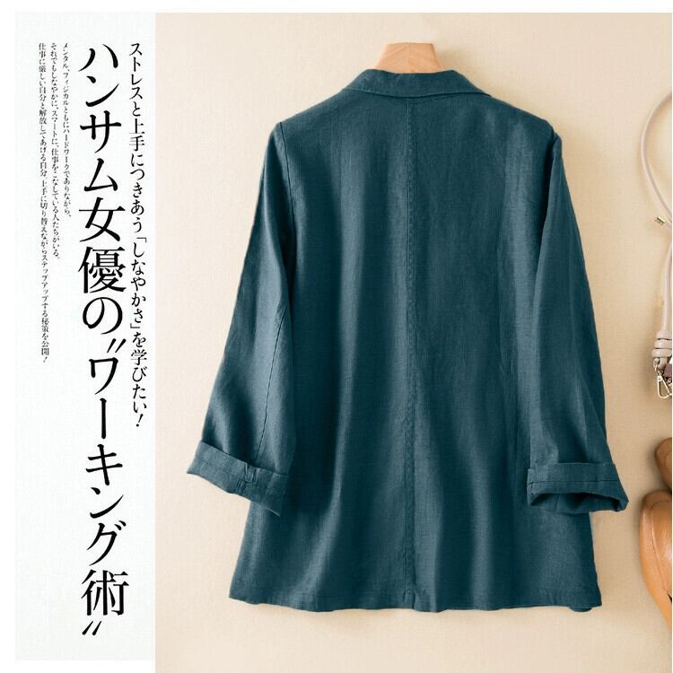 eign trade ese 有名なカウンターの女性のレトロなリネンブレザールーズ長袖コットンとリネンのブレザー ロング sine53882137619