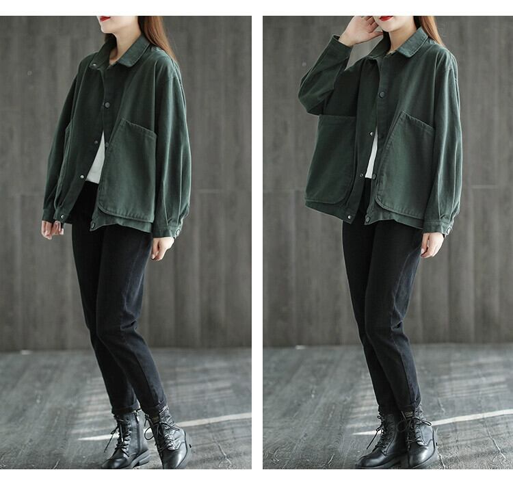 クリアランスカウンターストア最終在庫レディースレトロワークジャケットルーズカジュアル長袖カーディガントップ ロング sine96943834223