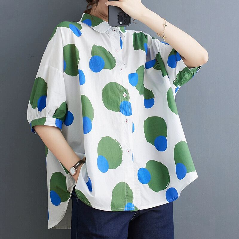 eign trade ese オリジナルハイエンドブランド年齢軽減水玉プリント半袖シャツ女性の夏ルーズスリムラペルトップ サマー 夏物 sine45294664145