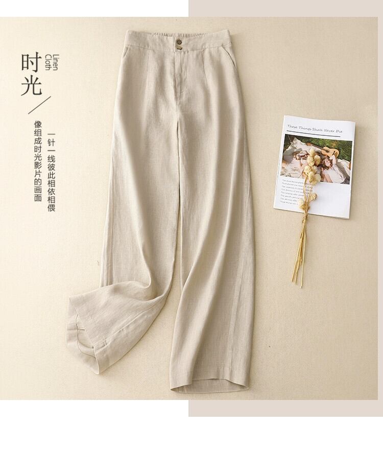ディスカウントストアショッピングモール撤退eseリネンストレートワイドレッグパンツ女性ハイウエストスリムカジュアルコットンとリネンロングパンツ sine48397125464