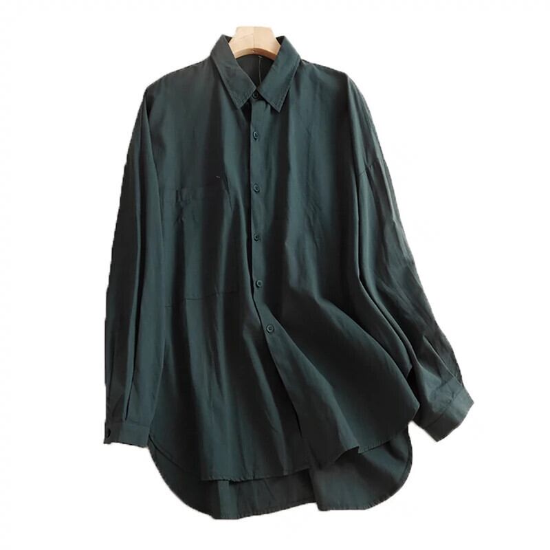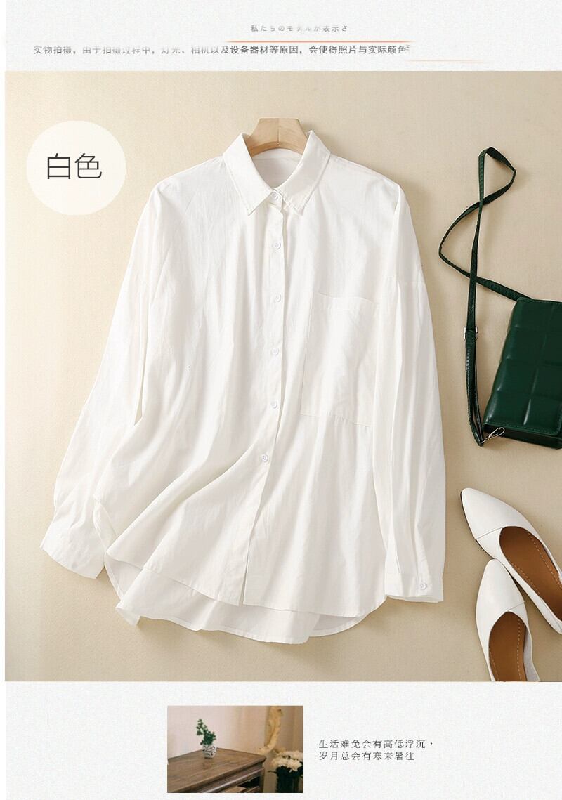 第一線ブランド eign trade 撤退最終在庫カジュアル年齢軽減ラペルリネントップルーズコットンとリネン長袖レディースシャツ ロング sine17284357192