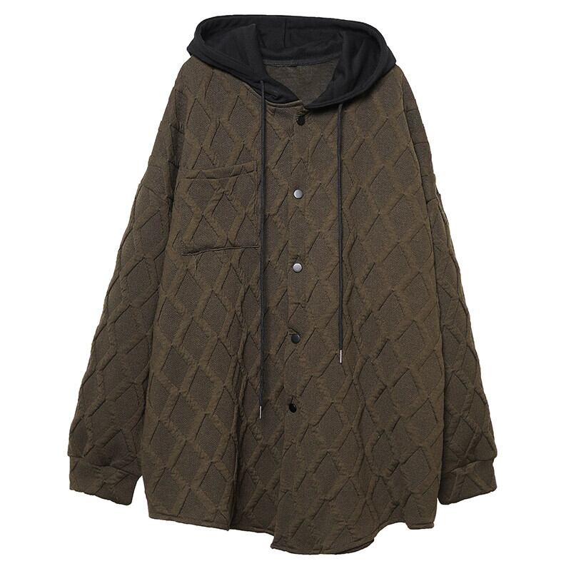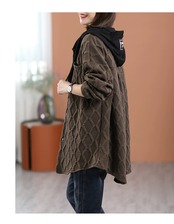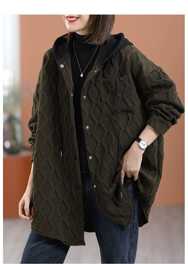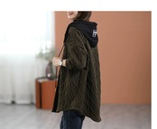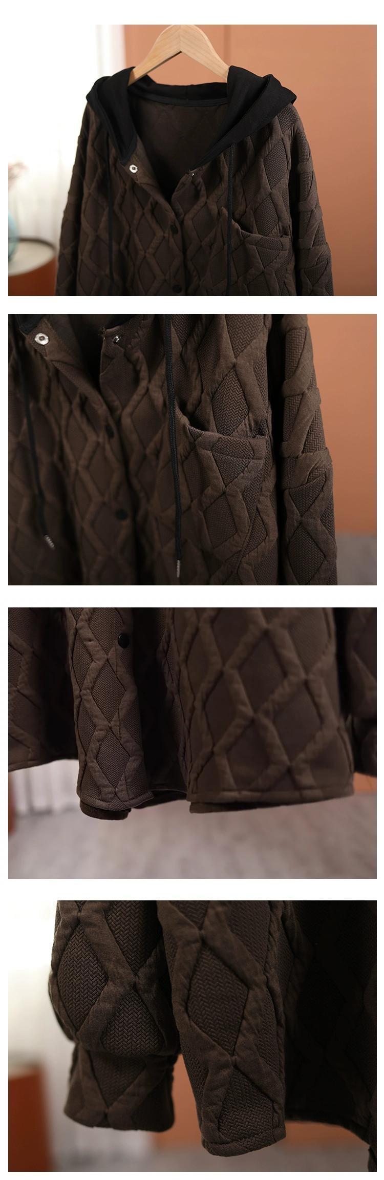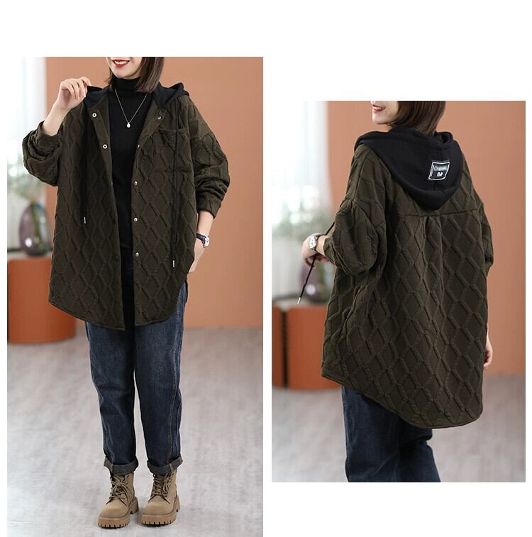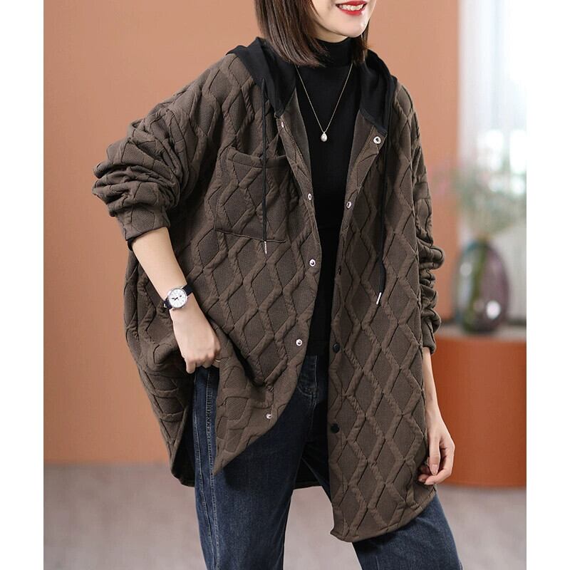 Eign Trade Export Big Tail Goods 撤退レディースレトロ菱形長袖スウェットシャツルーズミッドレングス暖かいフード付きジャケット ロング sine56393634376