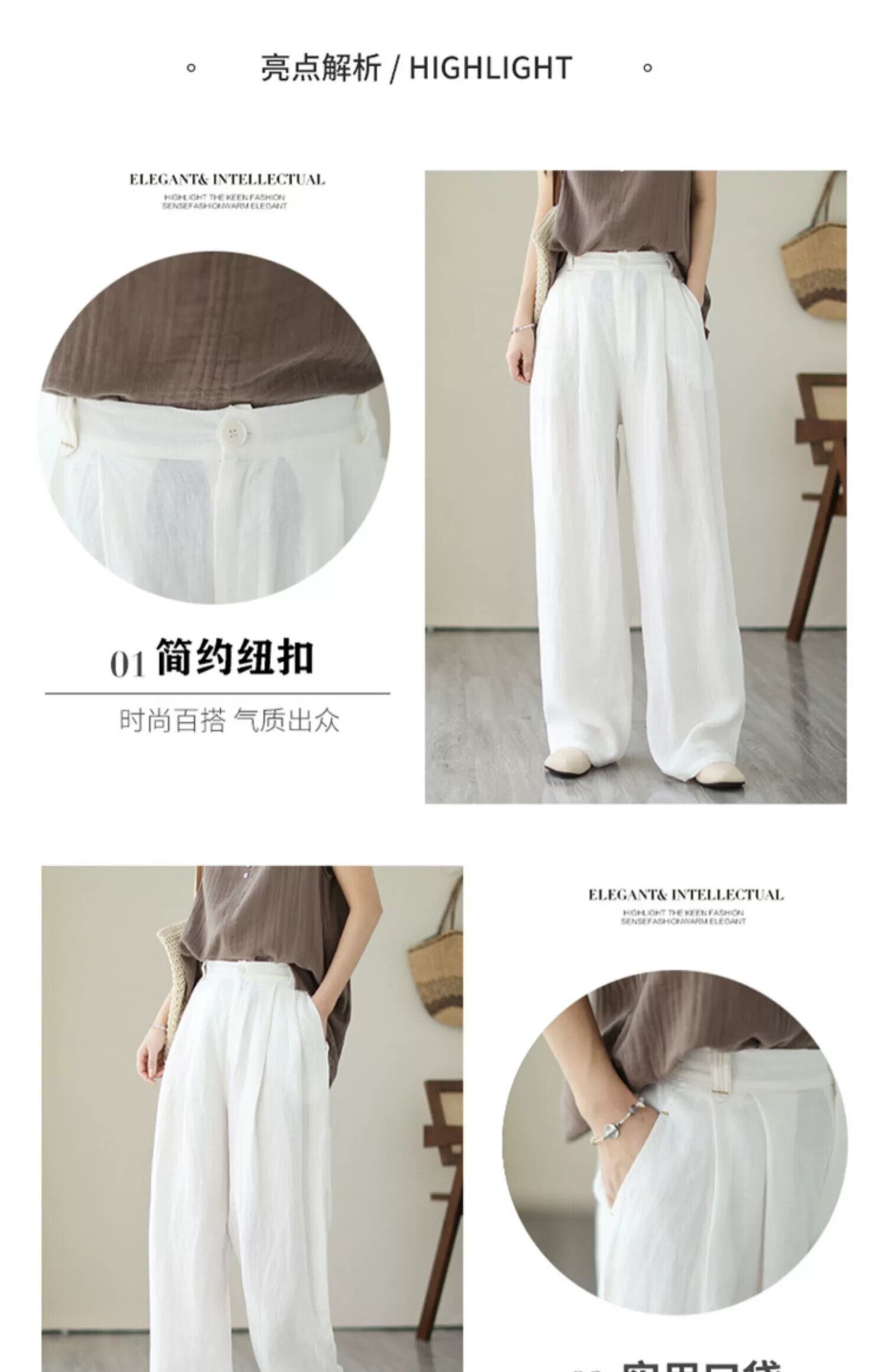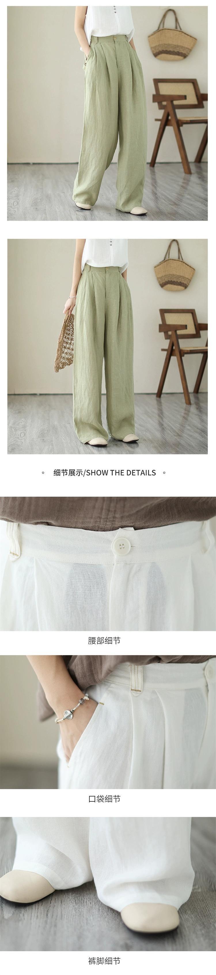 英国貿易輸出の有名なテール商品がキャビネットから削除されました レトロリネンカジュアルワイドレッグパンツ女性ハイウエストストレートドレープコットンとリネンパンツ sine20433794341