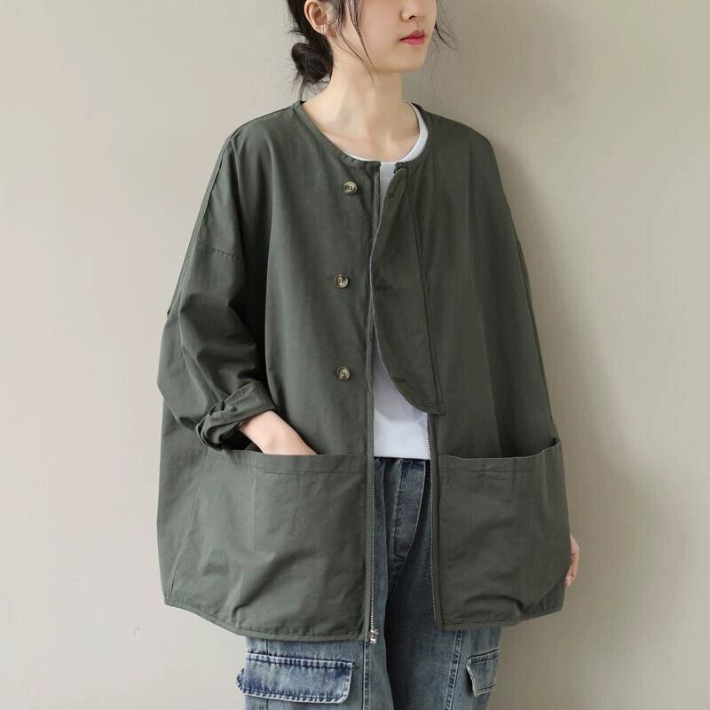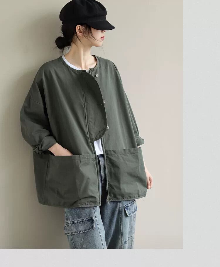 牛クリアランスハイエンドテールグッズレディースレトロルーズビッグポケットコートトップカジュアル大きいサイズ長袖ジャケット ロング 大きめサイズ sine82870787606