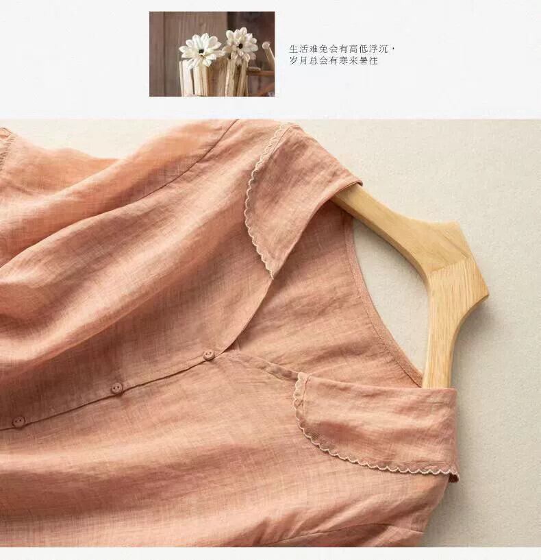 クリアランス漏れ ~ 有名商品、女性向けの気質のリネン半袖シャツ、ゆったりとしたベビーカラーのコットンとリネンの薄手のトップスをカウンター sine96477423998