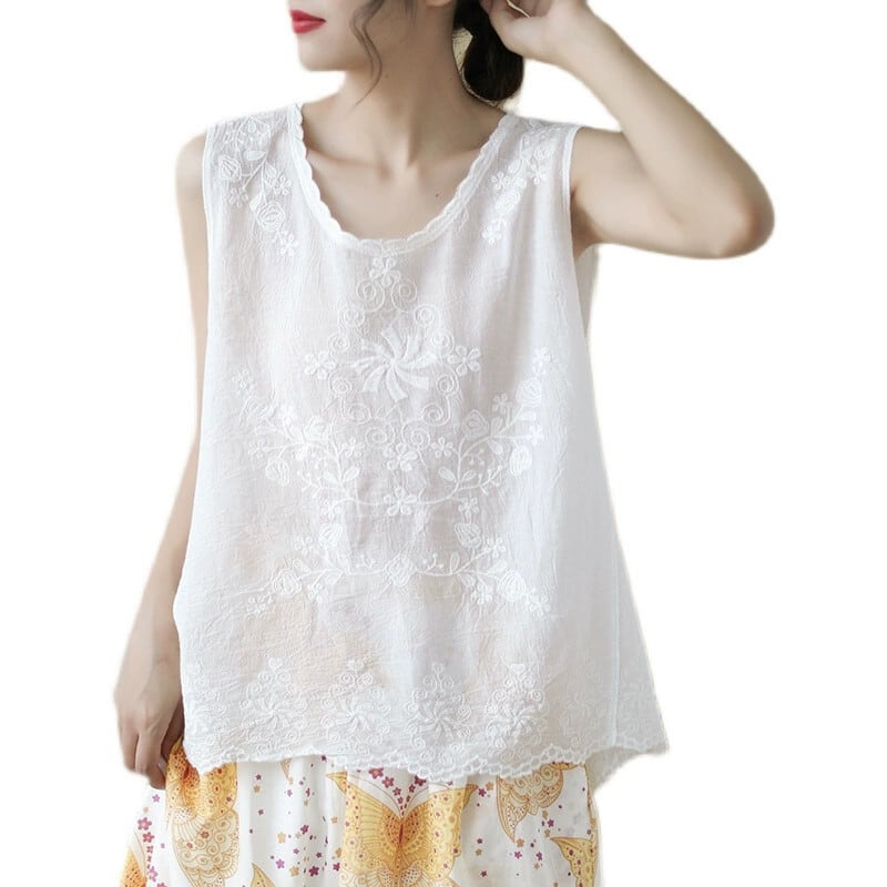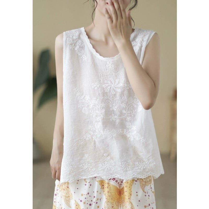 クリアランスブランド ビーフカウンターエンド シングル レディース ノースリーブ 刺繍入り 薄手 トップ ルーズ スリミング コットンとリネン キャミソール ベスト レッド sine94787104621