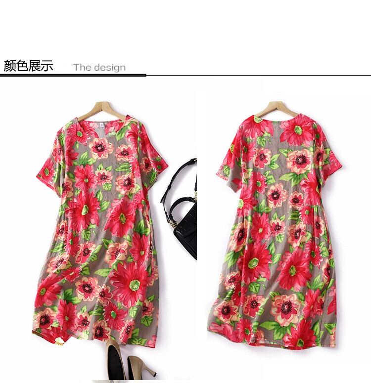 ディスカウント ストア ショッピング モール レトロ プリント ラミー ドレス レディース ルーズで軽いリネン A ライン ミドル丈スカート Aライン sine51044645016