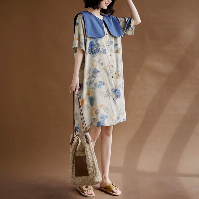 クリアランスリーク〜カウンター最後の在庫レディースアーティスティックプリントコットンとリネンのシャツドレスレディースルーズリネンドールカラードレス sine29272761718