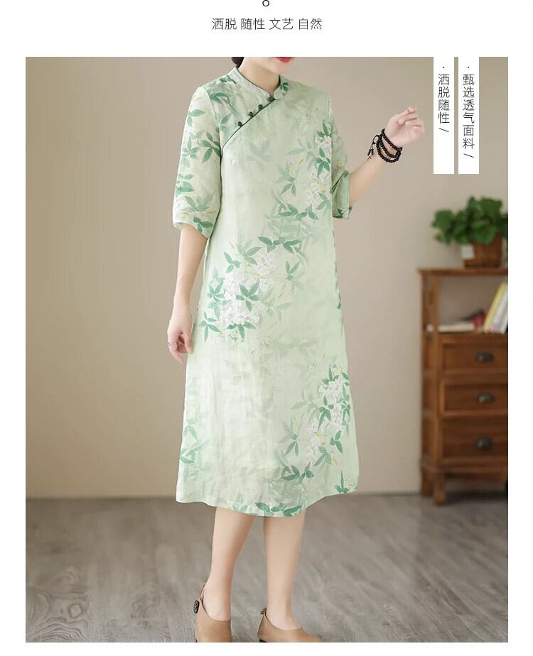 Eign trade counter brand 撤回された独身女性のレトロなバックル中国風の改良されたリネンロングスカートルーズプリントコットンとリネンのドレス sine22170088923