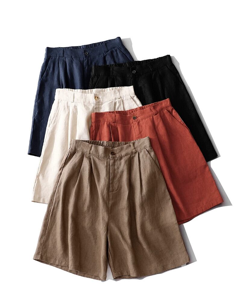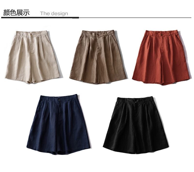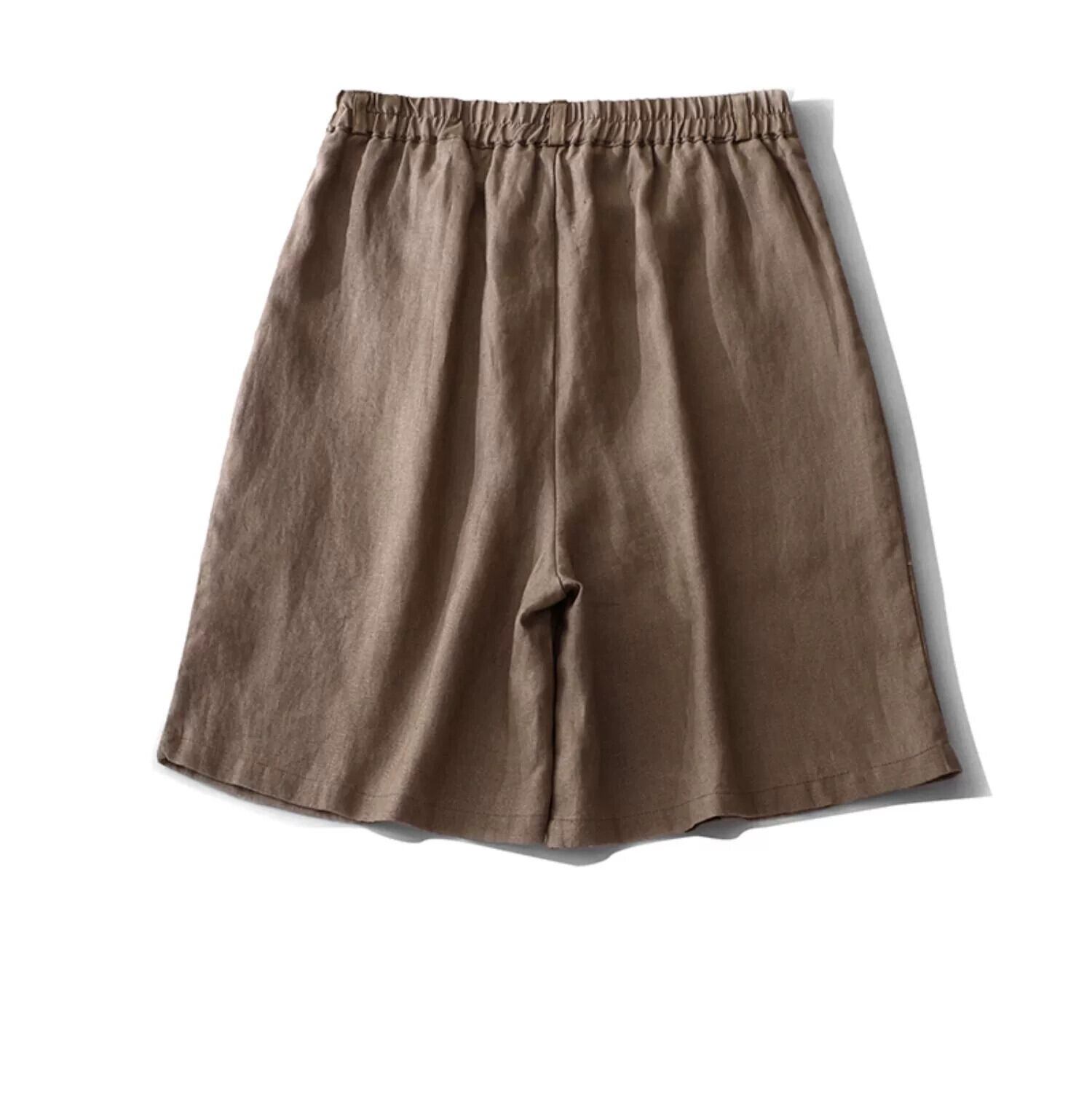 クリアランス漏れ ~ ese スタイルのコットンとリネンのワイドレッグ ショーツ、女性用ハイウエスト ストレート A ライン カジュアル リネン 5 分パンツ、カウンターで完売 ブルマー Aライン sine47200963828