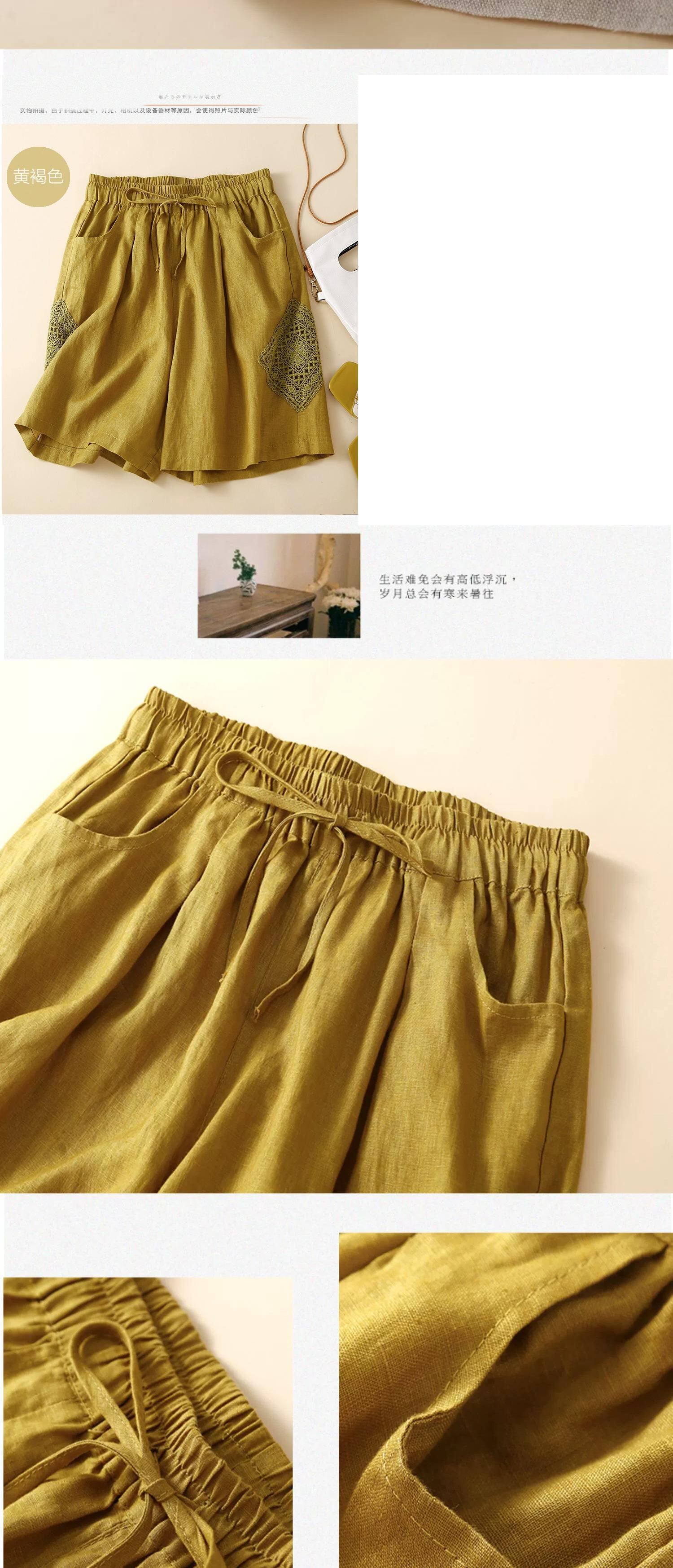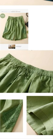 第一線ブランド eign trade 撤退品かぎ針編み中空コットンとリネンのショート パンツ レディース ハイウエスト カジュアル リネン ワイドレッグ 5 分パンツ ショーツ ブルマー sine14162783532