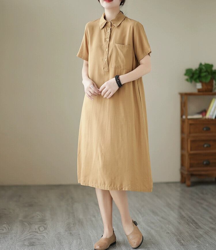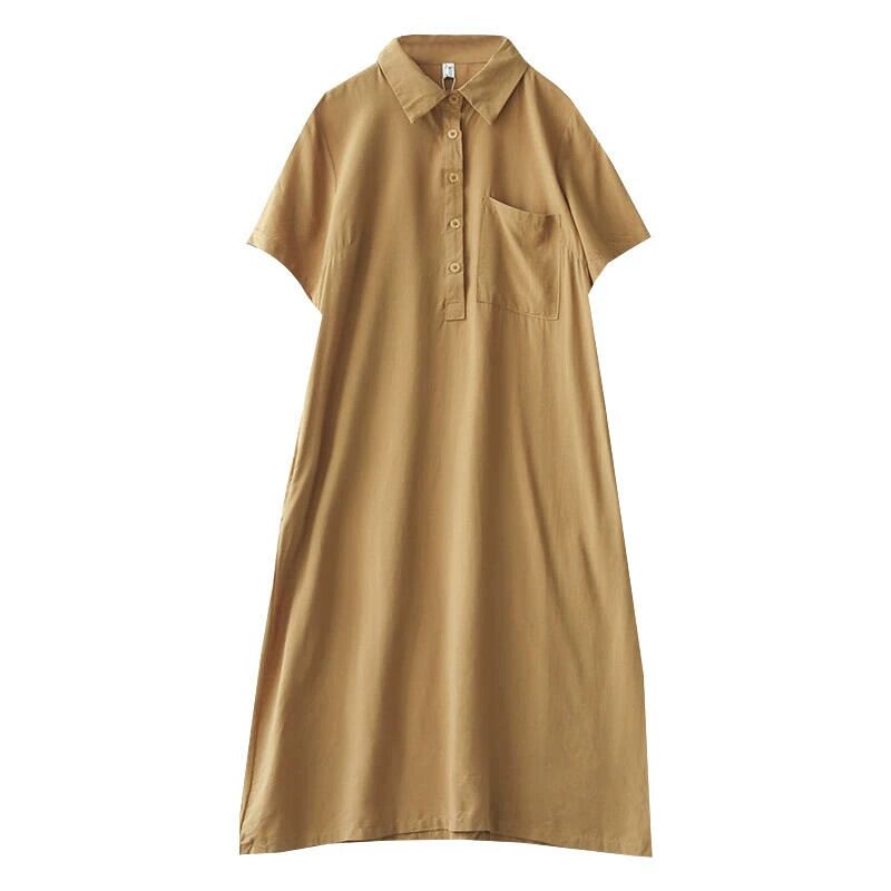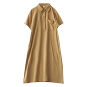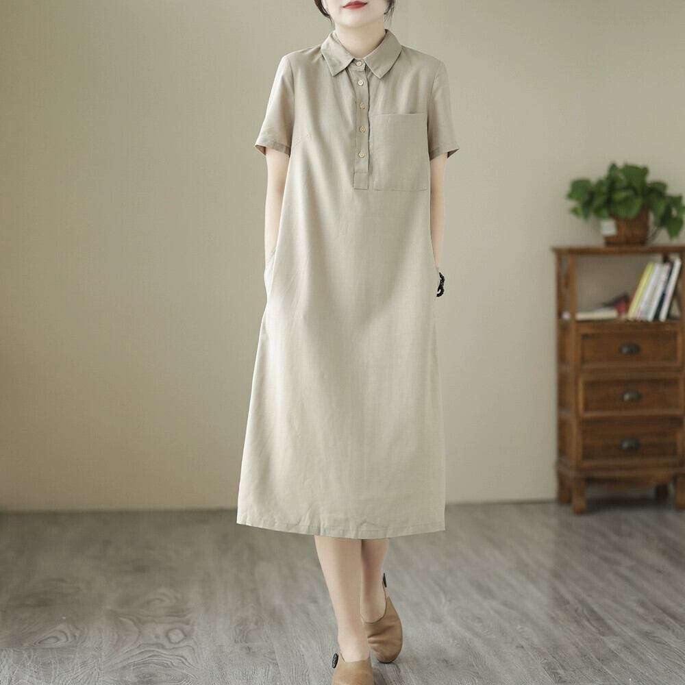 ディスカウントストアショッピングモールの女性のカジュアルコットンとリネンドレスルーズラペルミッドレングスリネンシャツドレス夏 サマー 夏物 sine87534300068