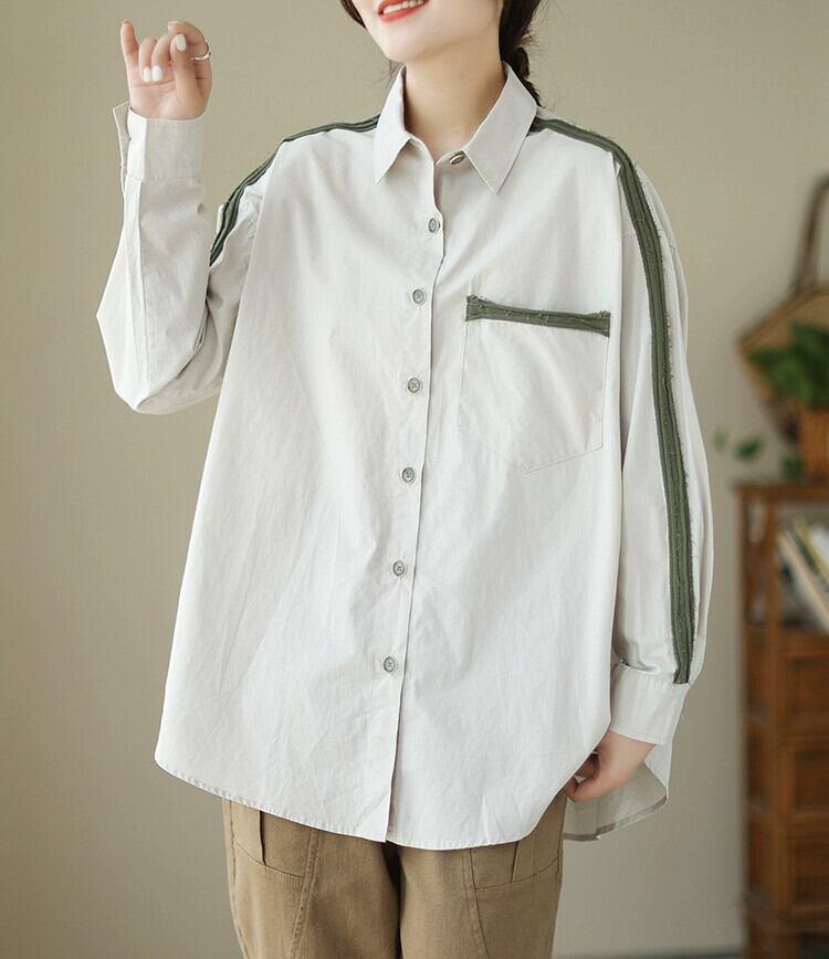 ese 孤独な有名ブランドクリアランスカジュアル大きいサイズカラーブロック長袖レディースシャツルーズ痩身カーディガンジャケット ロング 大きめサイズ sine7086417349
