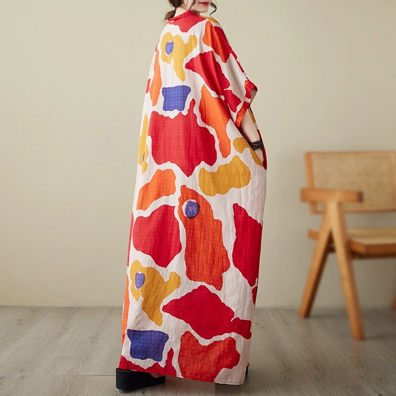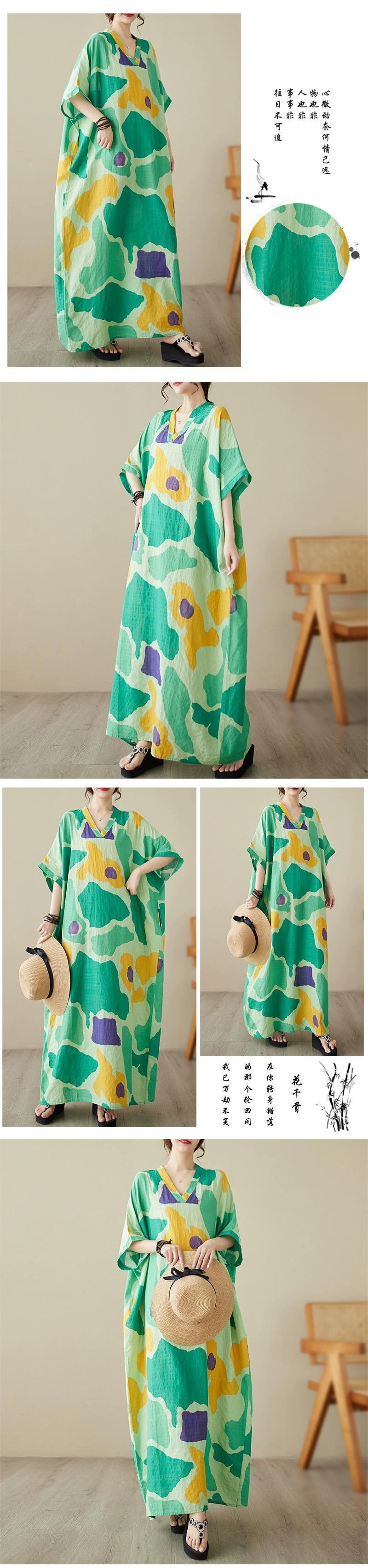 クリアランス クリアランス カウンター 牛グッズ 撤去カウンター カラーブロック プリント コットンとリネンのドレス ゆったり 大きいサイズ Vネック 膝上 ロング スカート レディース 大きめサイズ sine31542496012