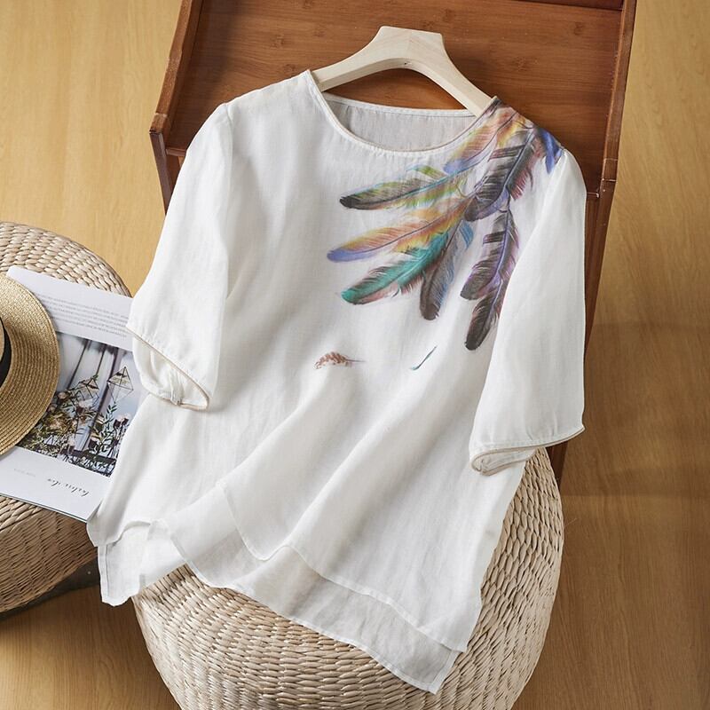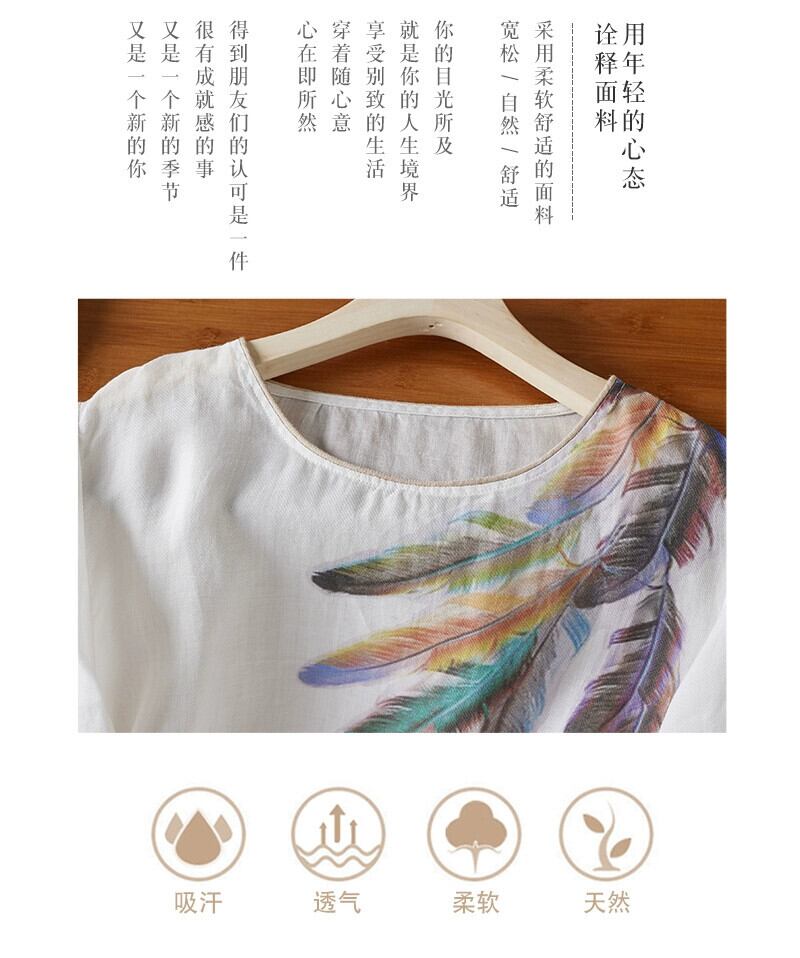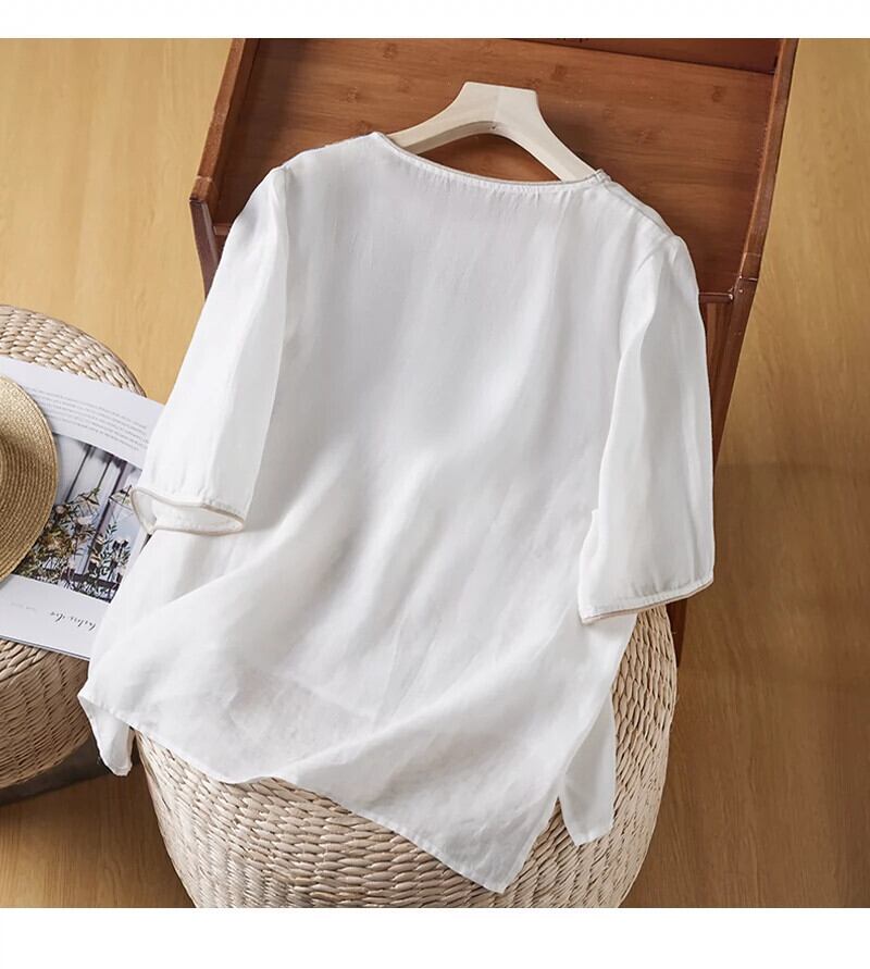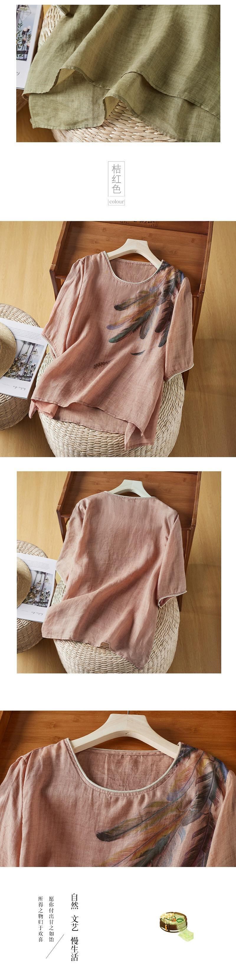 ディスカウントストアショッピングモール文学芸術綿麻半袖シャツトップス女性ルーズラウンドネックリネン半袖Tシャツ コットン Oネック sine22274967499