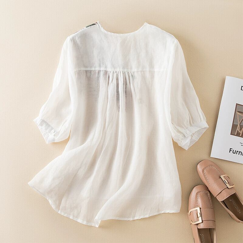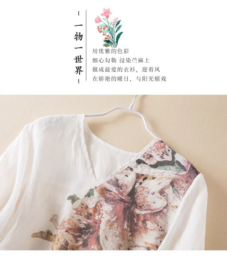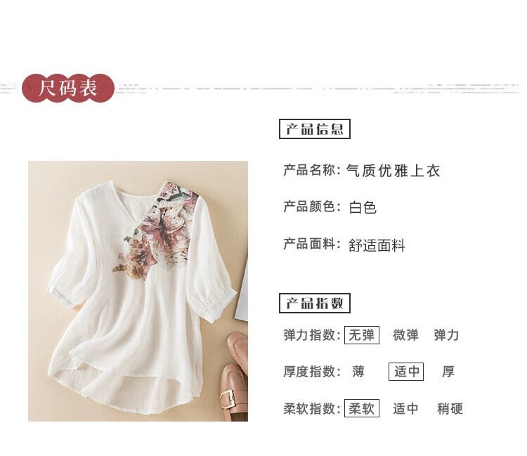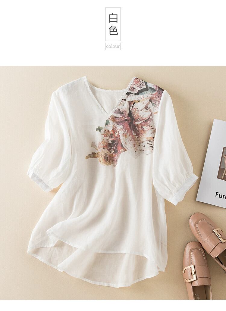 カウンタークリアランス クリアランス最終在庫 ese プリントリネンシャツ Tシャツ レディース ルーズ V ネック コットンリネン半袖シャツ Vネック sine12785991001