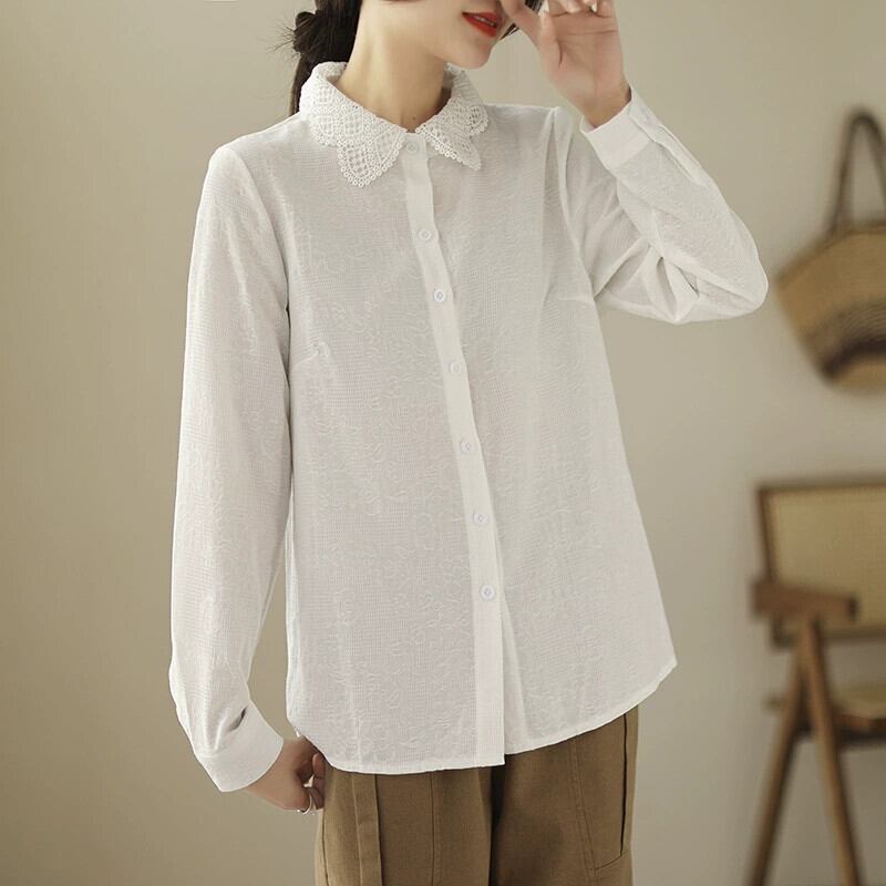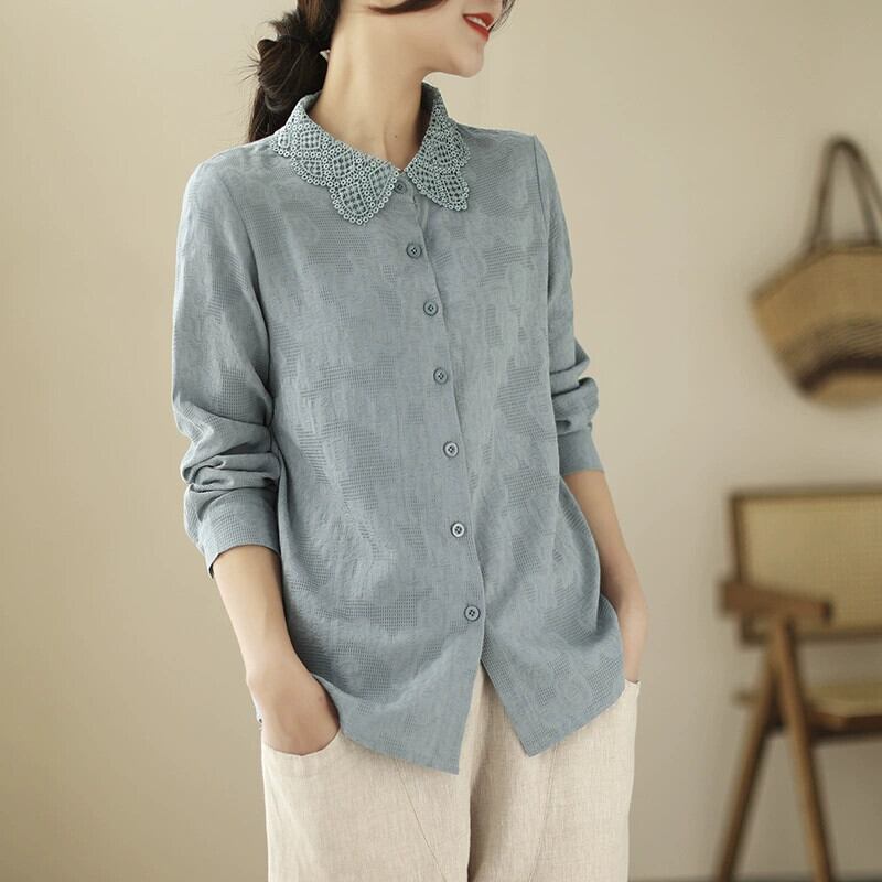クリアランスブランド牛グッズカウンターエンド在庫レトロジャカード刺繍コットントップ二層綿糸ラペルレディースシャツ レッド sine14672233011