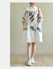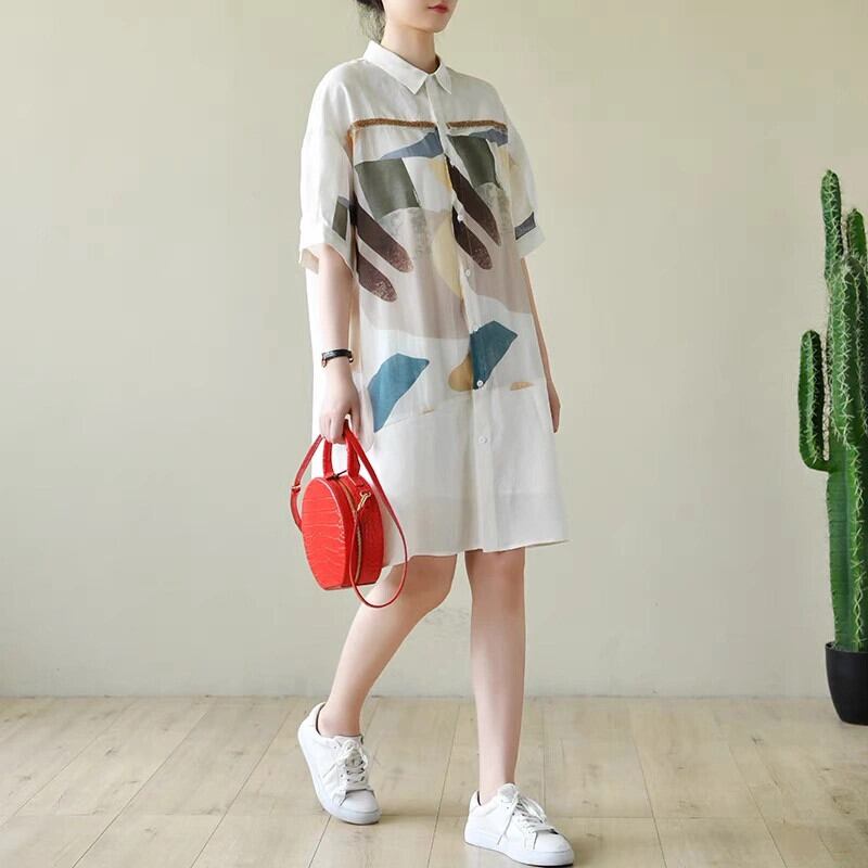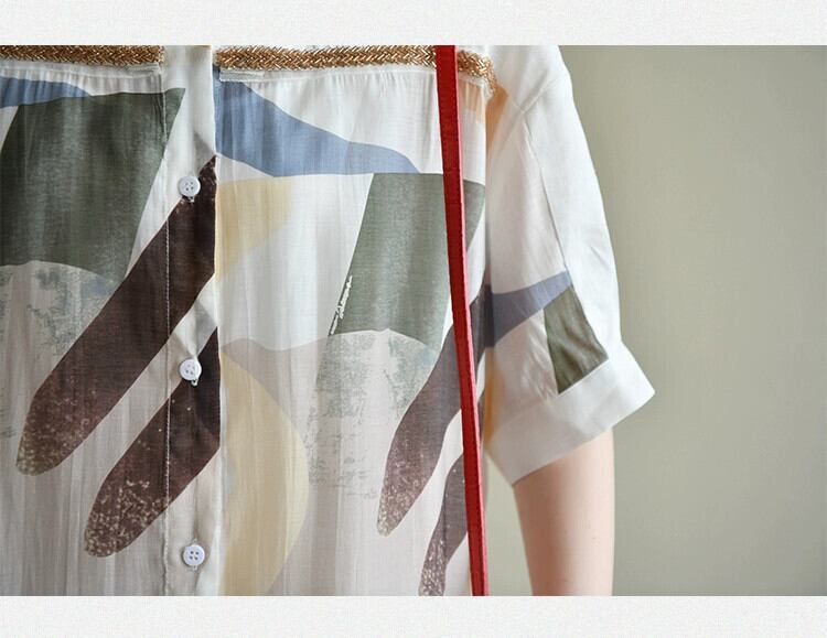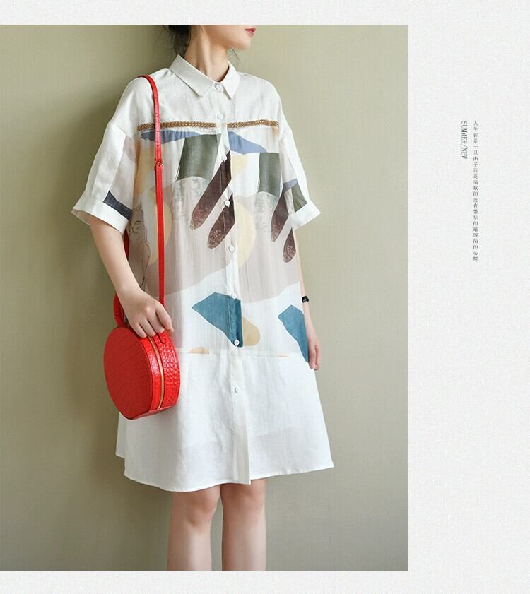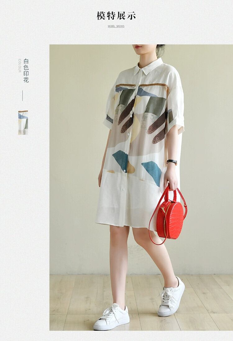 有名ブランドの在庫切れレディース リネン プリント シャツ ミッドレングス スカート サマー ルーズ コットンとリネン半袖ドレスのクリアランス カウンターの削除 夏物 sine40852406198