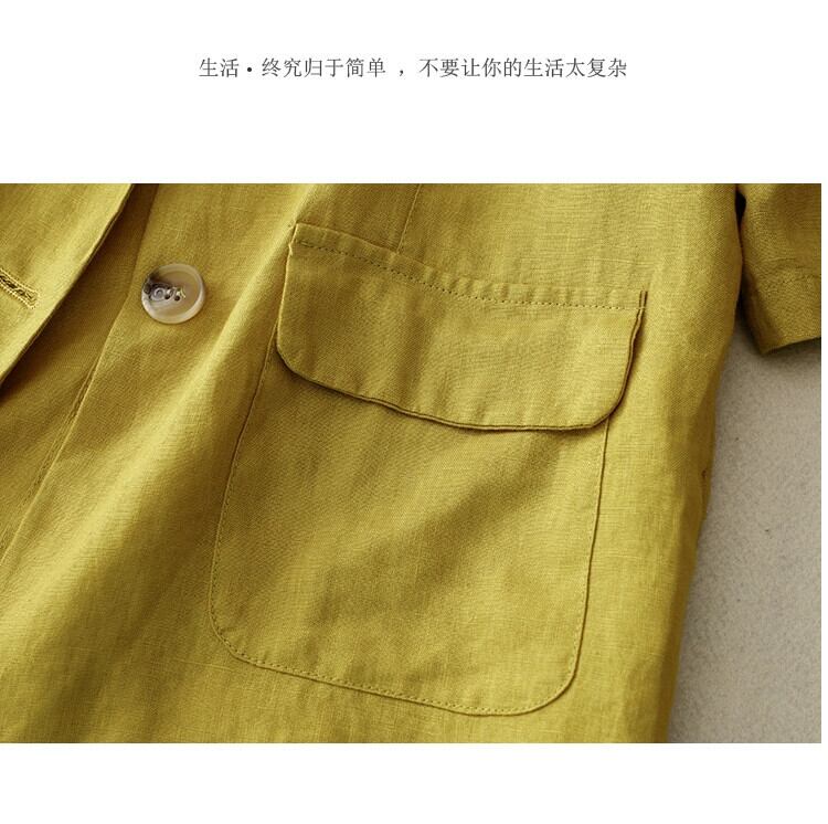 第一線ブランド eign trade 撤退最終在庫レディースコットンとリネン半袖スーツカラージャケットルーズリネン小さなスーツトップ薄い sine87889388302