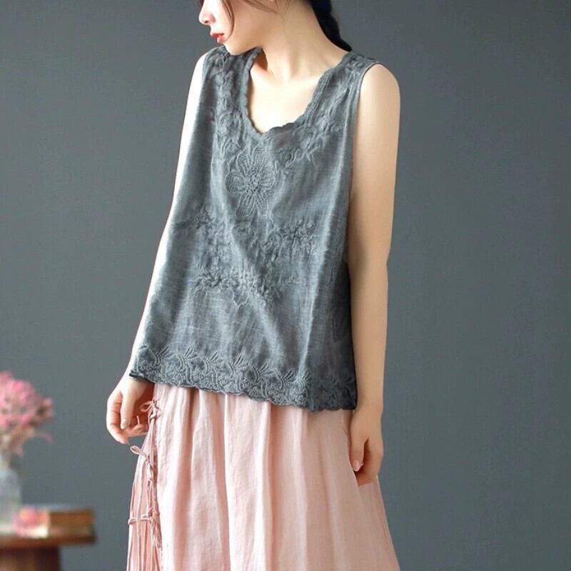 Eign Trade 輸出ブランドテールグッズレトロ刺繍ラミーノースリーブトップ女性の夏のルーズ薄い綿とリネンのキャミソール レッド コットン サマー 夏物 sine69301485464