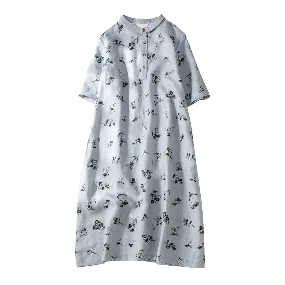 eign trade ese オリジナルハイエンドブランドの女性のレトロリネン花柄ドレスルーズ半袖コットンとリネンの人形のスカート sine45166171139
