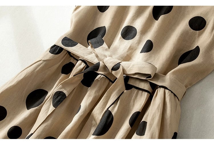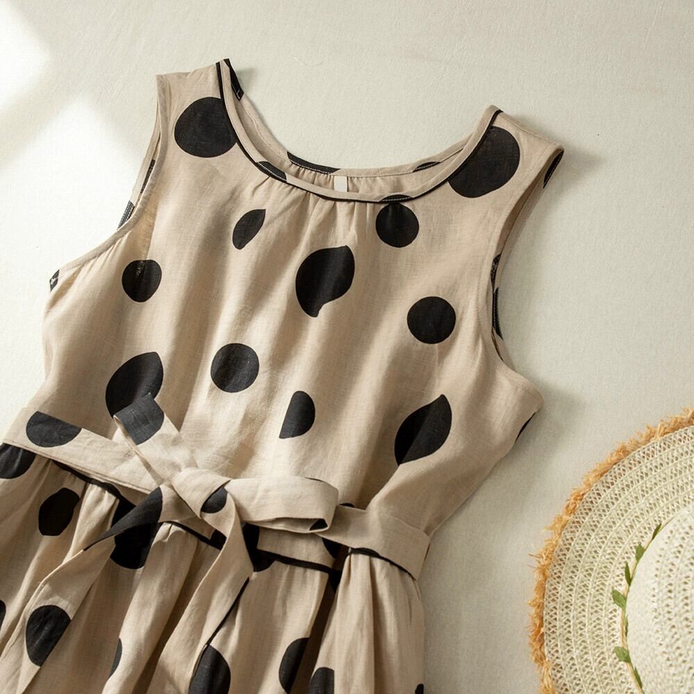 クリアランスリーク〜eseオリジナル夏薄い水玉ラミーベストドレス女性ルーズノースリーブコットンとリネンドレス サマー 夏物 sine43375598922