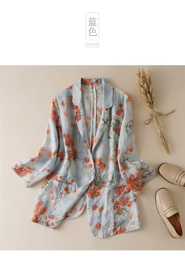 クリアランスリーク ~ カウンター最後の在庫 レディース ラミー プリント スモール スーツ トップ ルーズ 7 分袖 コットンとリネン ブレザー sine77409591538