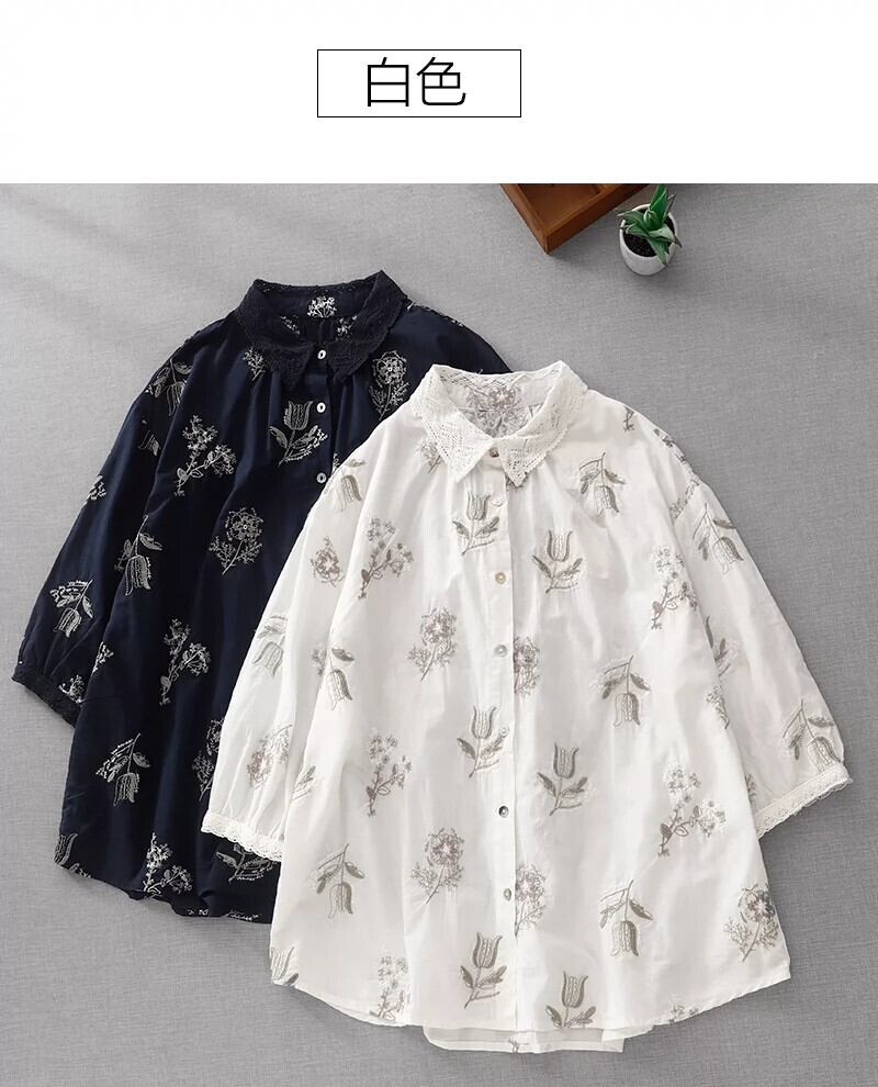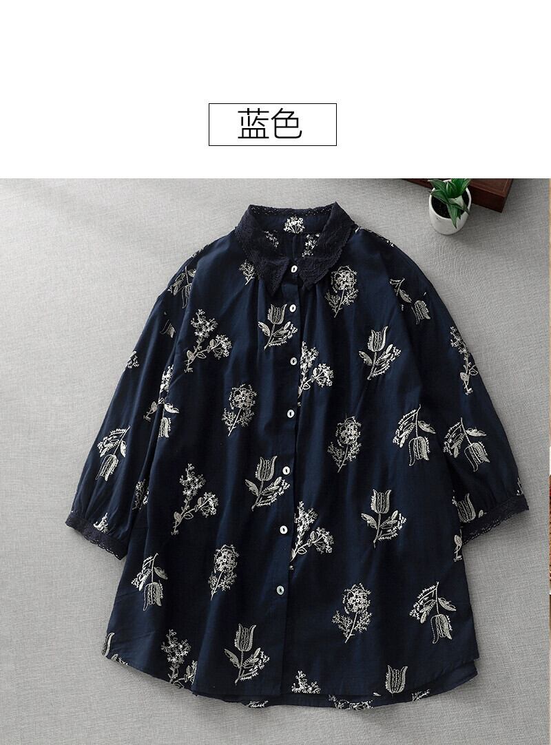 eign trade ese オリジナルハイエンドブランドレディースプリント刺繍リネン半袖シャツルーズコットンとリネンの七分袖トップス レッド sine80571741121