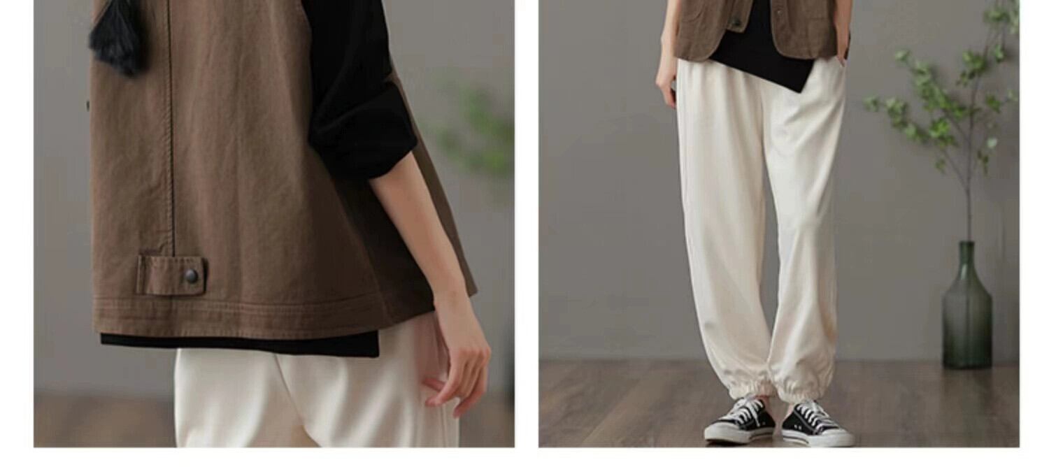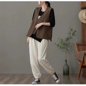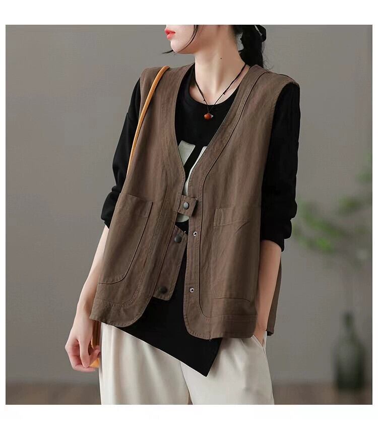 ディスカウント ストア ショッピング モールの女性のレトロな綿とリネンのチョッキ ジャケット ルーズ V ネック ベスト トップ コットン Vネック sine74818208384