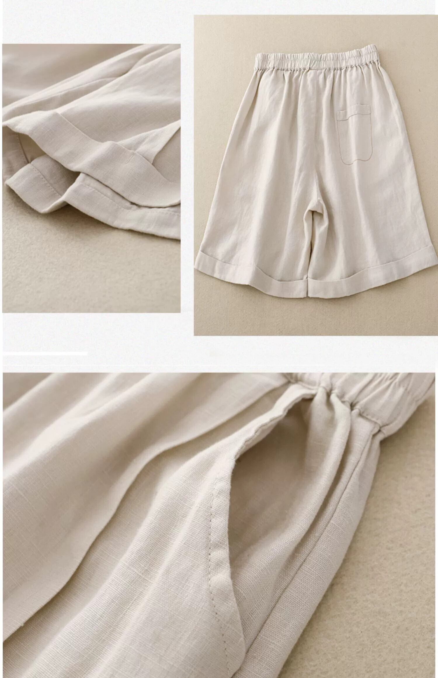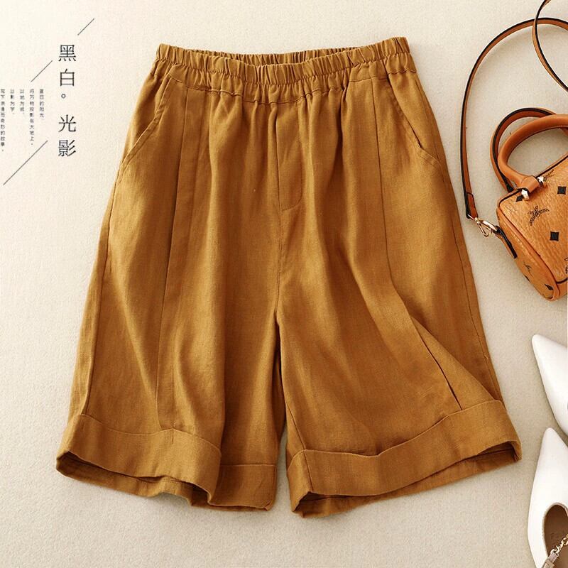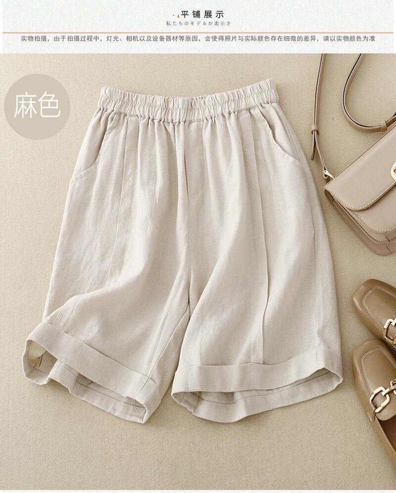 第一線ブランドの eign trade 撤退、ゆったりとしたコットンとリネンのワイドレッグ ショーツ、女性用の伸縮性のあるウエスト、カジュアルなリネンの 7 分パンツ、薄手 エラスティック ブルマー sine41391424089