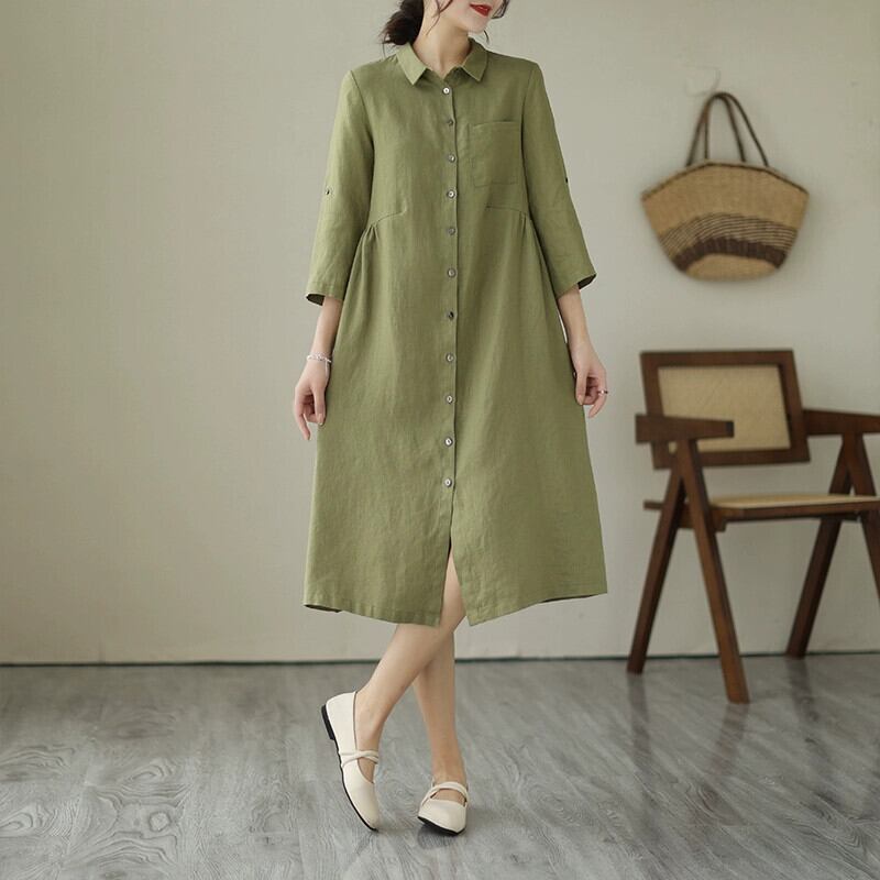 大手ブランドテールグッズのクリアランスカウンター撤去ゆったり綿麻カーディガンワンピースレディース軽くて薄いPOLO襟リネンミモレ丈スカート コットン sine28133867582