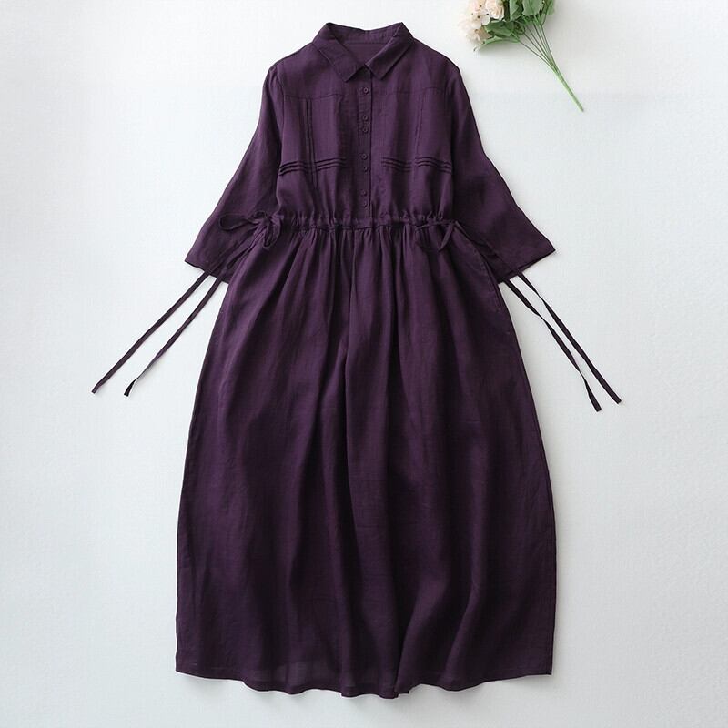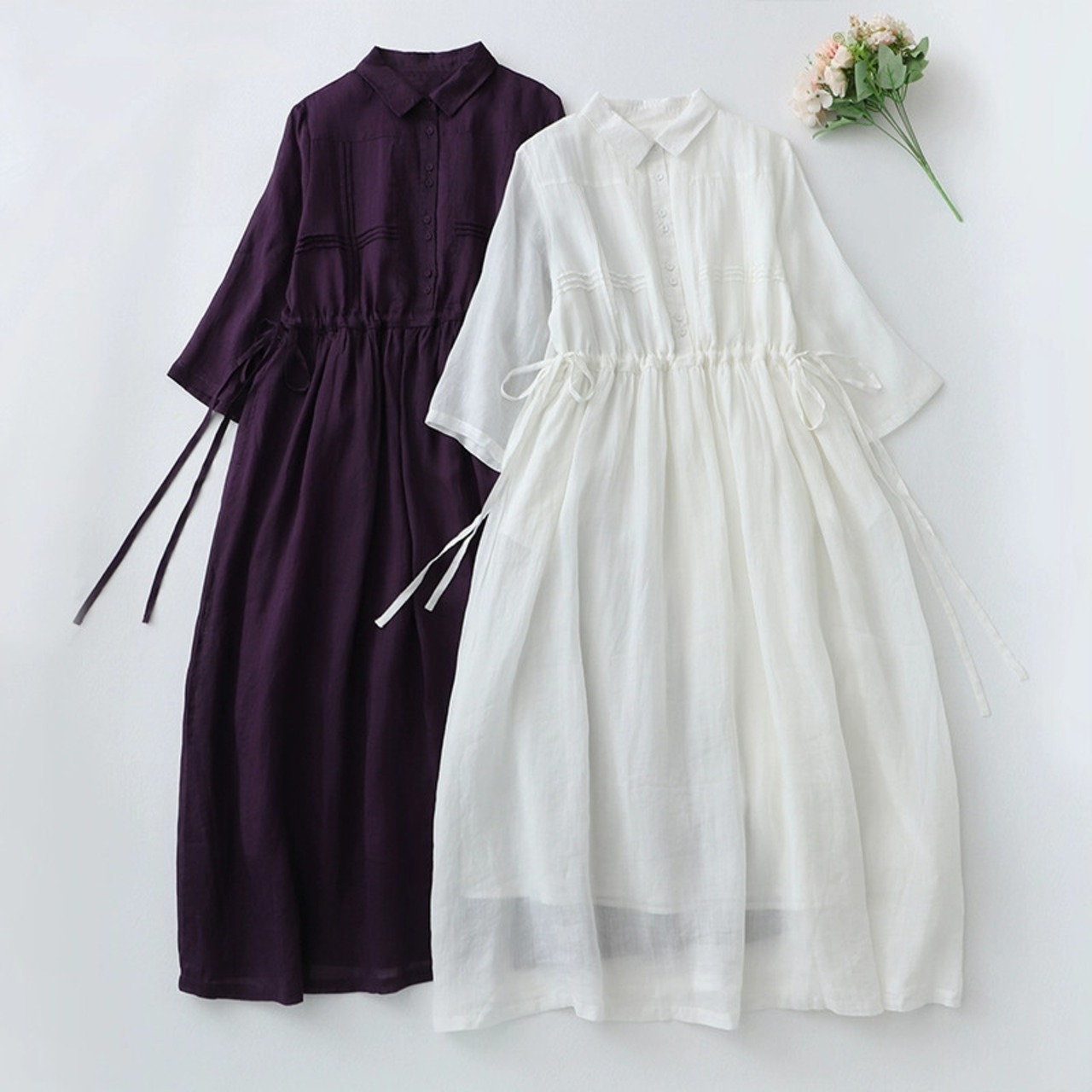 クリアランスハイエンドテールグッズレディースエセリネンシャツドレスウエスト巾着綿麻Aラインロングスカート コットン sine83937923128