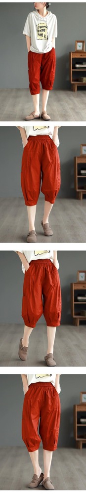 ビッグブランドテール商品のクリアランスカウンター除去無地シンプルなワークウェア七分丈パンツレディースウエストゴム付きカジュアル七分丈ハーレムパンツ エラスティック 伸縮 ソリッドカラー sine4719229305