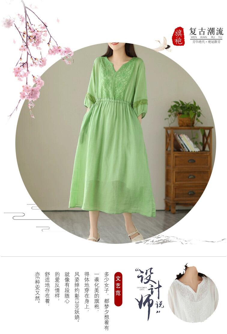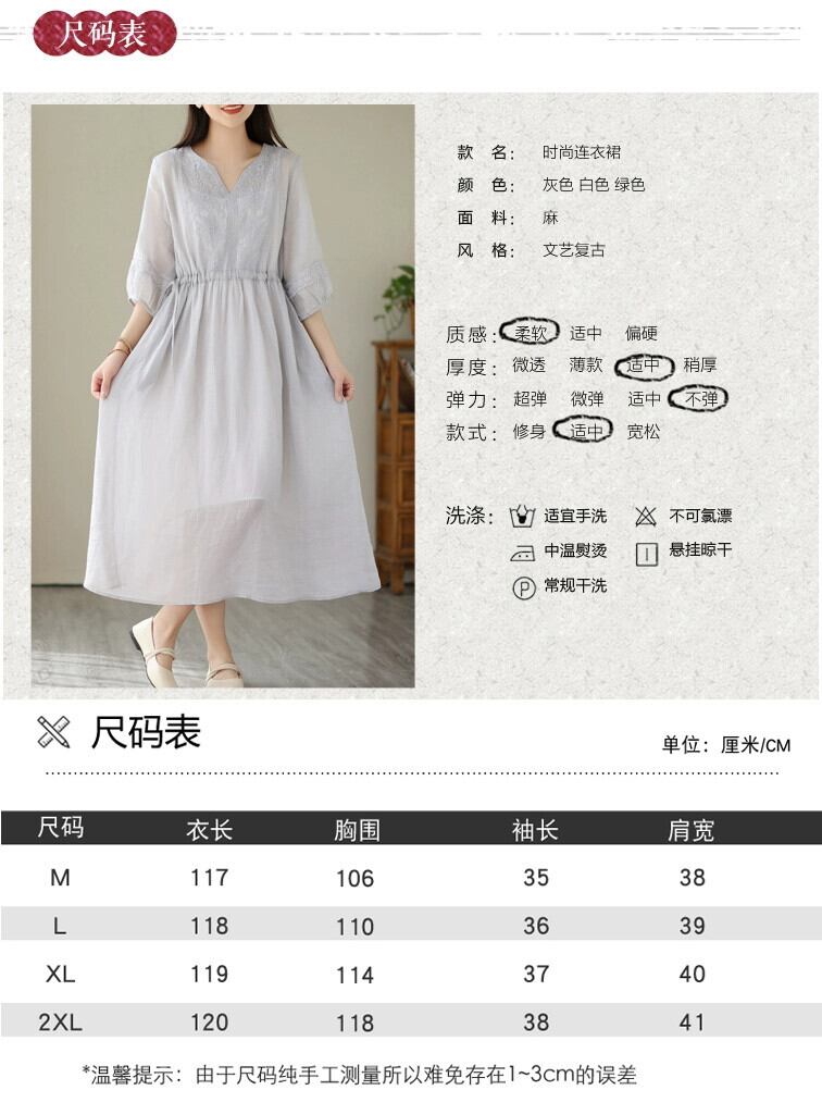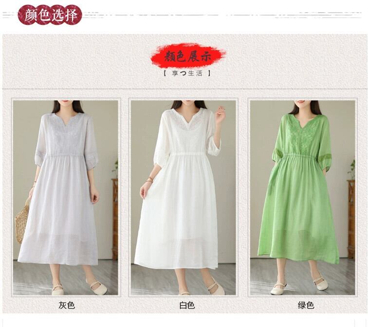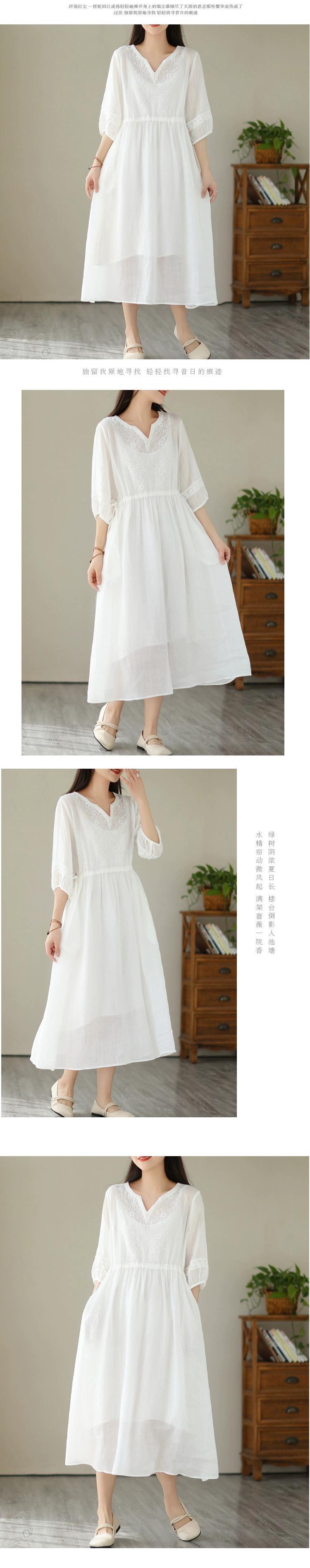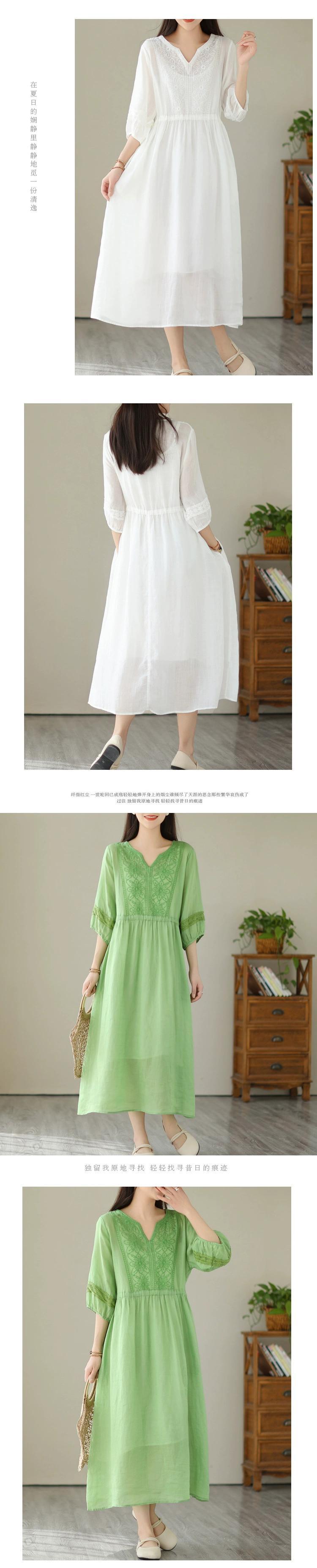 ファーストラインブランド eign trade 最終在庫レースラミー V ネックドレスレディースルーズウエスト綿麻ロングスカート コットン Vネック sine29922307111