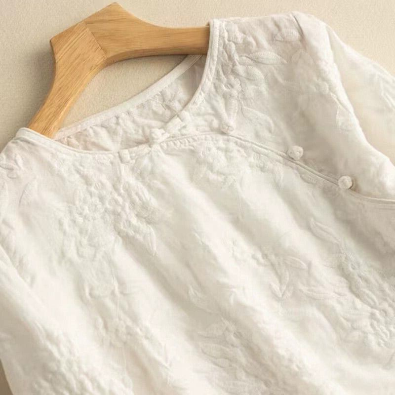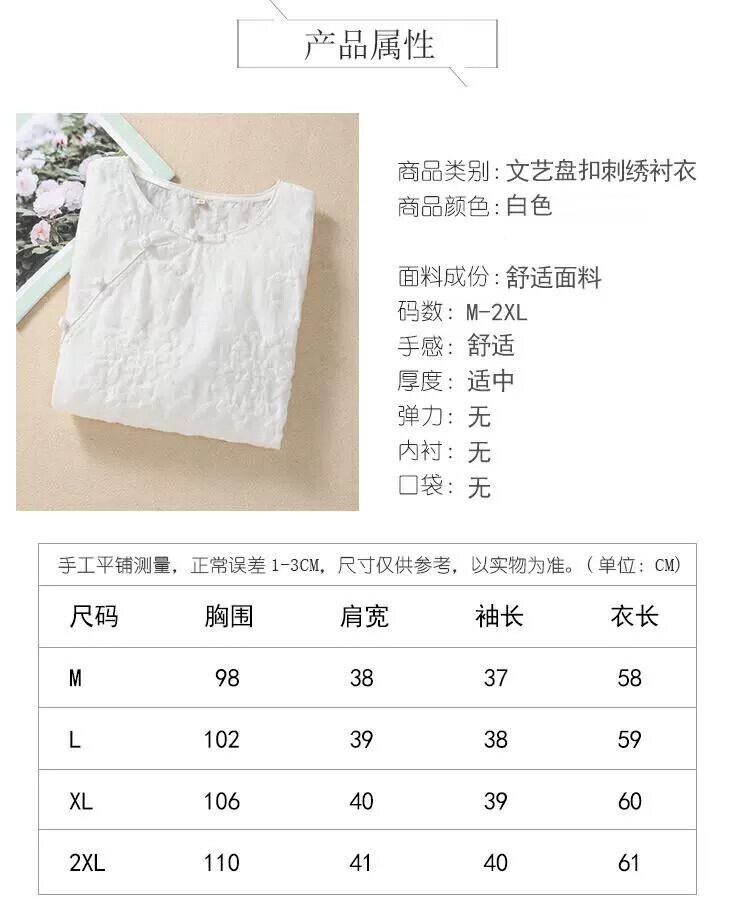 Eign Trade Counter ブランド テール グッズ レトロな斜めの前立てボタン付きラミー シャツ レディース ルーズ刺繍コットンとリネン 7 分袖トップ レッド sine60507781098