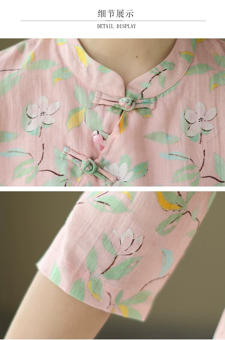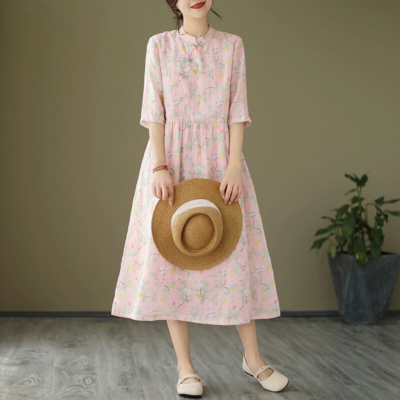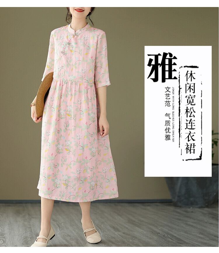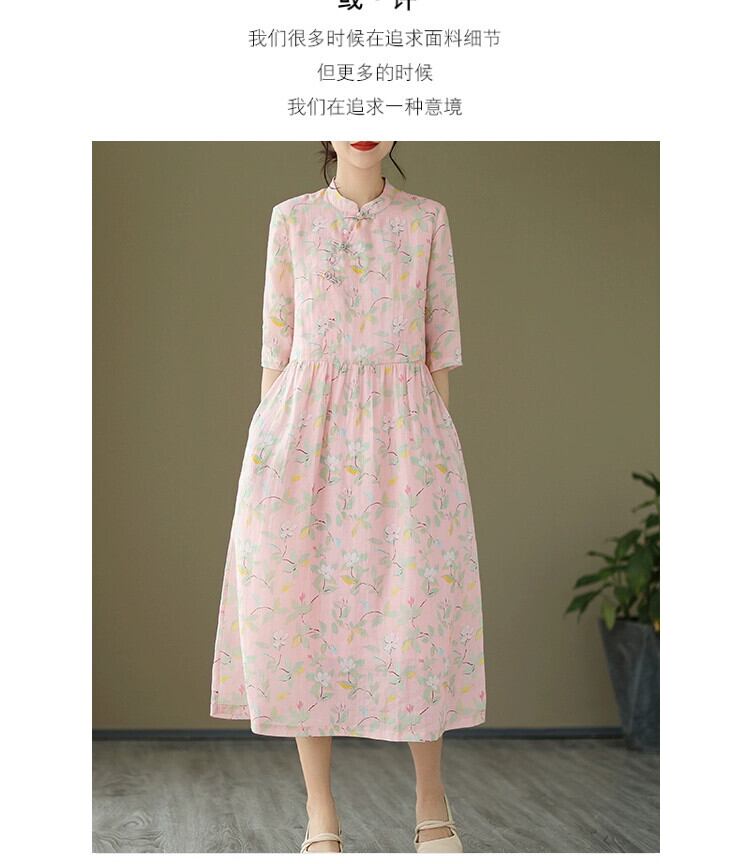 カウンタークリアランスクリアランス中国風スラントラペルボタン付きチャイナドレスハイウエストスリムコットンとリネン半袖ドレス sine47011915595