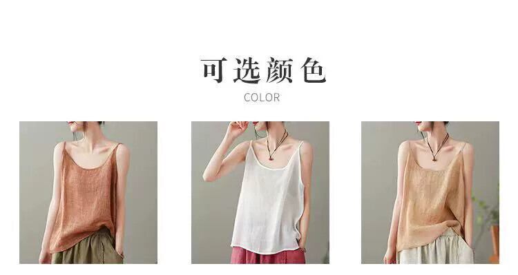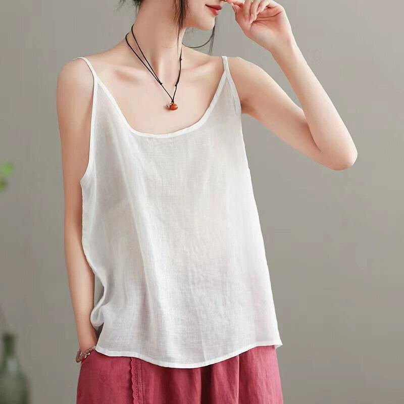 クリアランスリーク〜eseオリジナルのレトロな綿とリネンのキャミソールレディースゆったりとした軽いリネンのノースリーブインナートップ コットン sine78164576775