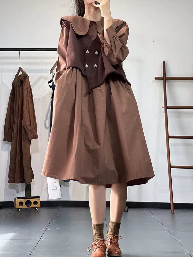 eign貿易輸出大手ブランドテール商品がキャビネットから撤収され、eignスタイルの年齢を減らす人形の襟のドレスの女性、緩い痩身長袖ミドル丈スカート ロング sine76472372360