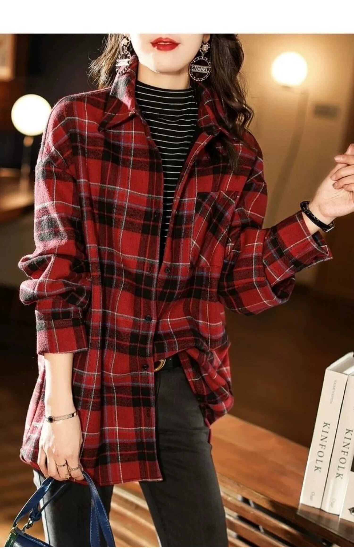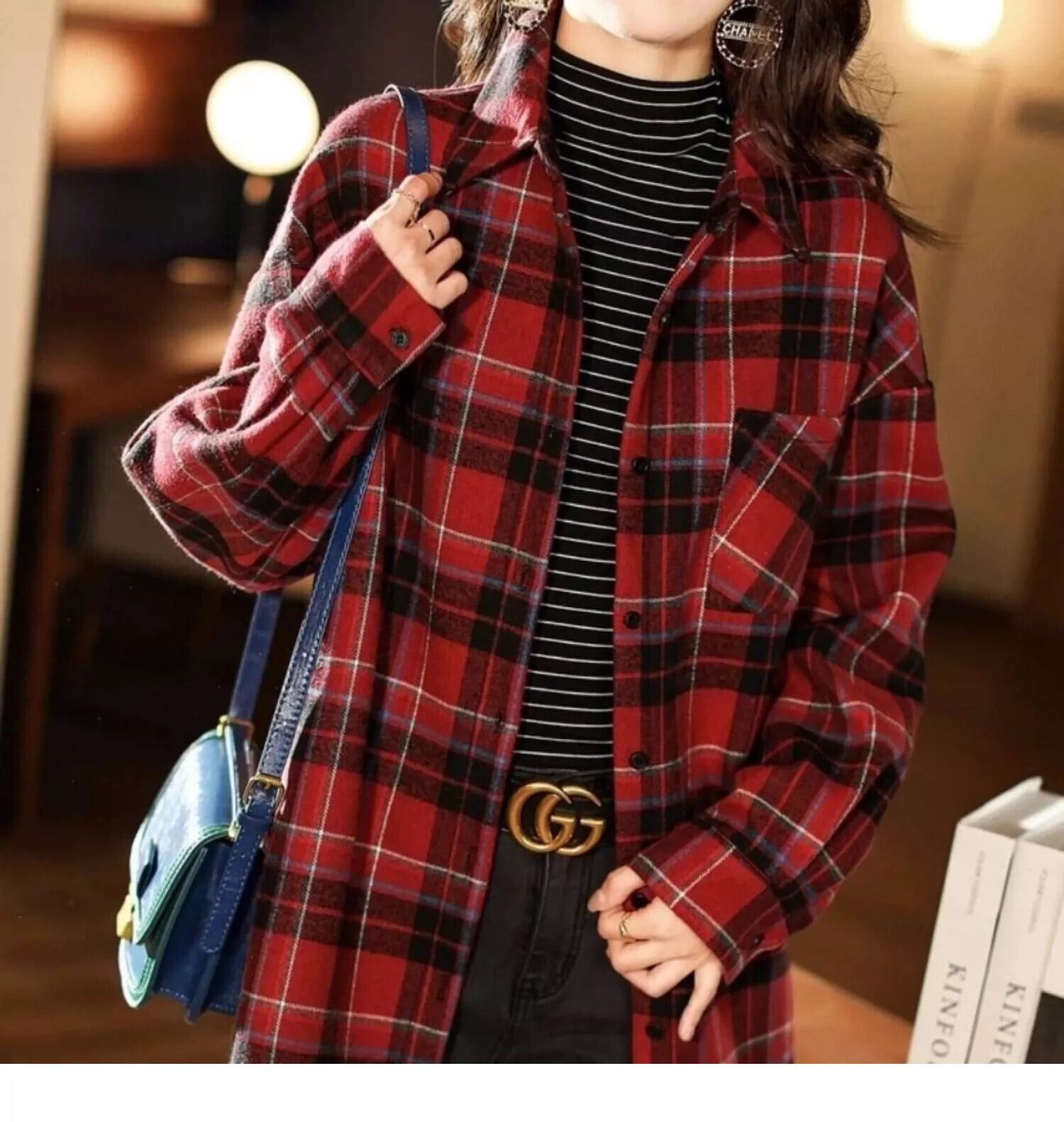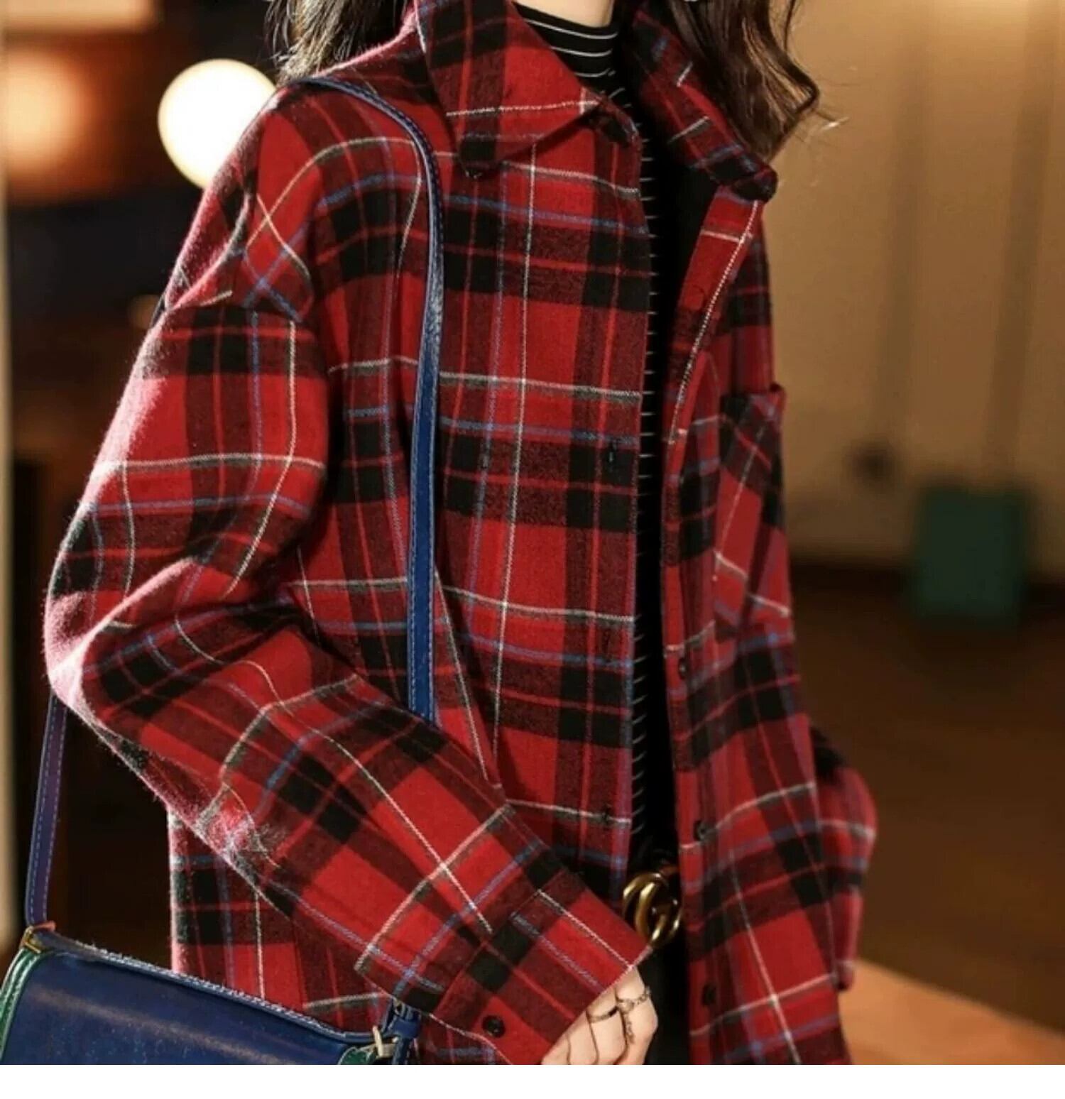 第一線のブランド eign trade 撤退香港スタイルのレトロな格子縞のシャツの女性のルーズカジュアルな起毛トップショートジャケット sine76521632745