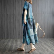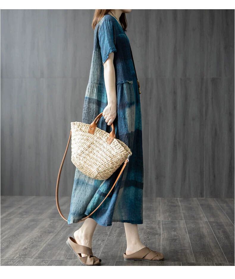 eign trade ese 有名なカウンターグッズ女性の文学的な大きいサイズの綿とリネンのドレス女性のルーズ V ネックリネンロングスカート薄手 コットン 大きめサイズ Vネック sine88170060646