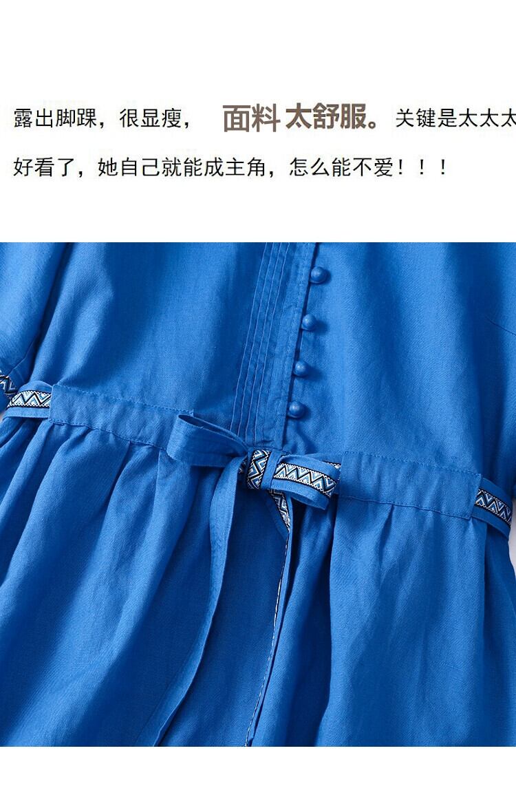 クリアランスリーク〜eseスタイルオリジナル文学シンプルリネン半袖ドレスルーズウエストネクタイコットンリネンAラインスカート sine92155739819