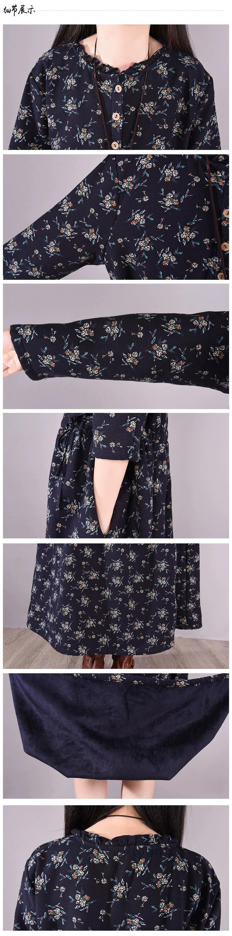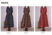 eign trade ese オリジナルブランド婦人服レトロ花柄コットンとリネンのドレスルーズウエスト長袖リネンミドル丈スカート ロング sine2824118404