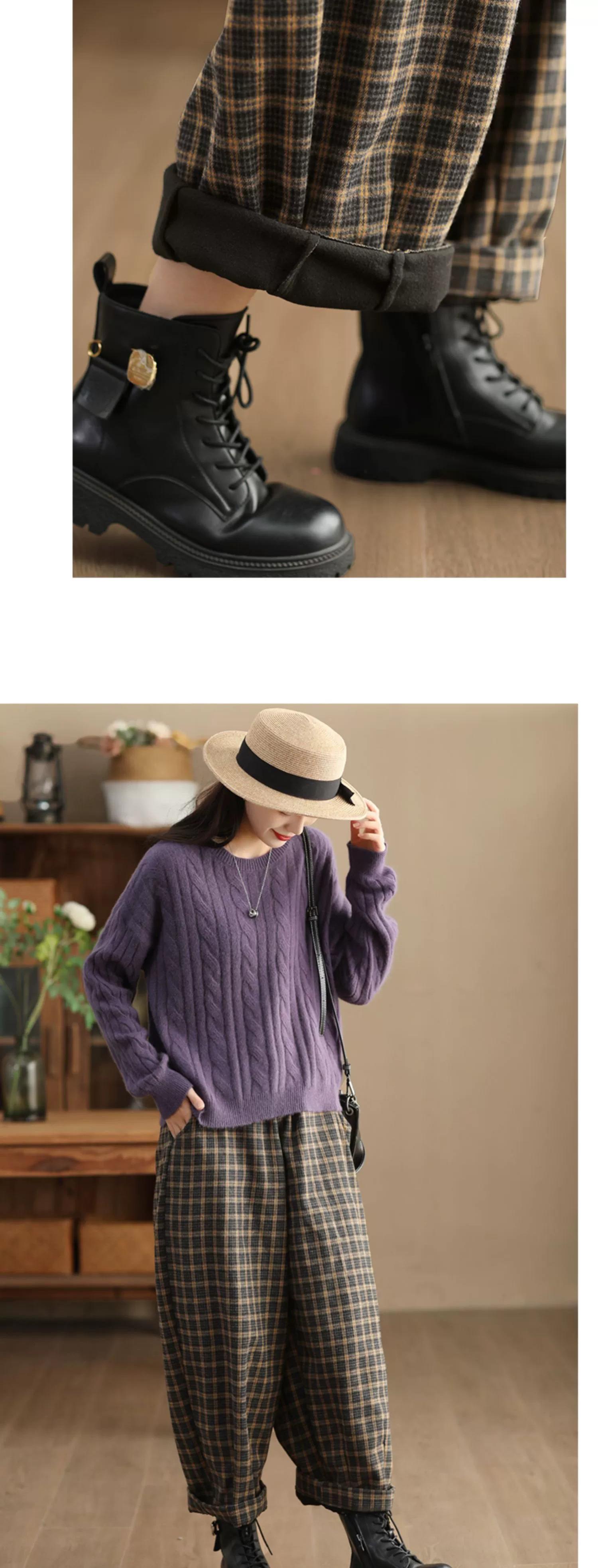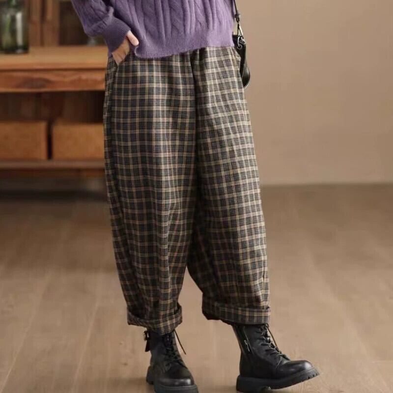 クリアランスブランドビーフカウンターテールグッズプラスベルベットと厚みのあるワイドレッグウールパンツ女性ハイウエストカジュアルチェック柄ハーレムパンツ sine81814405872