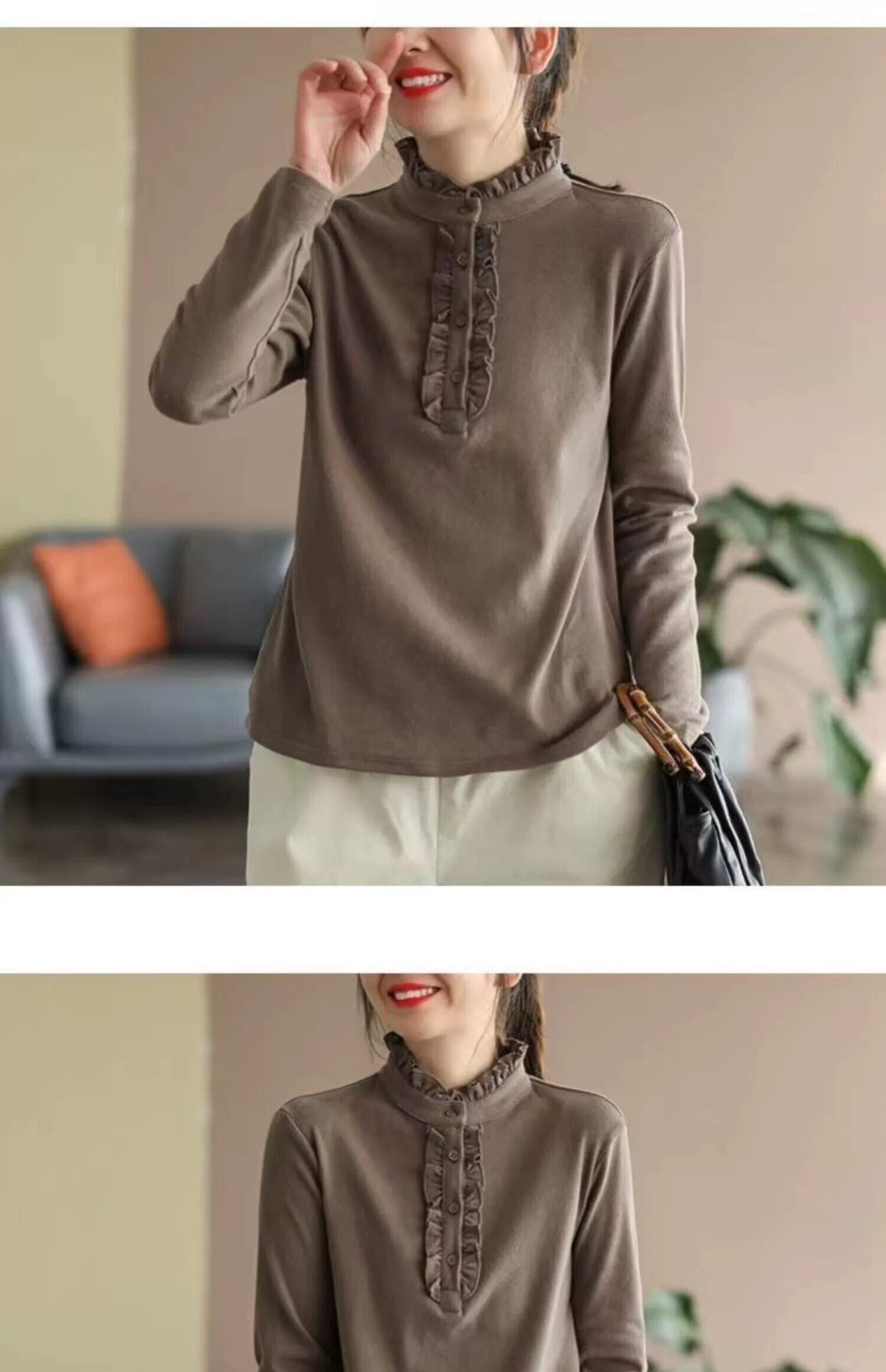 ディスカウントストアショッピングモール婦人服レトロ菌類長袖ボトシャツルーズハーフタートルネックトップTシャツ ロング sine33926637930