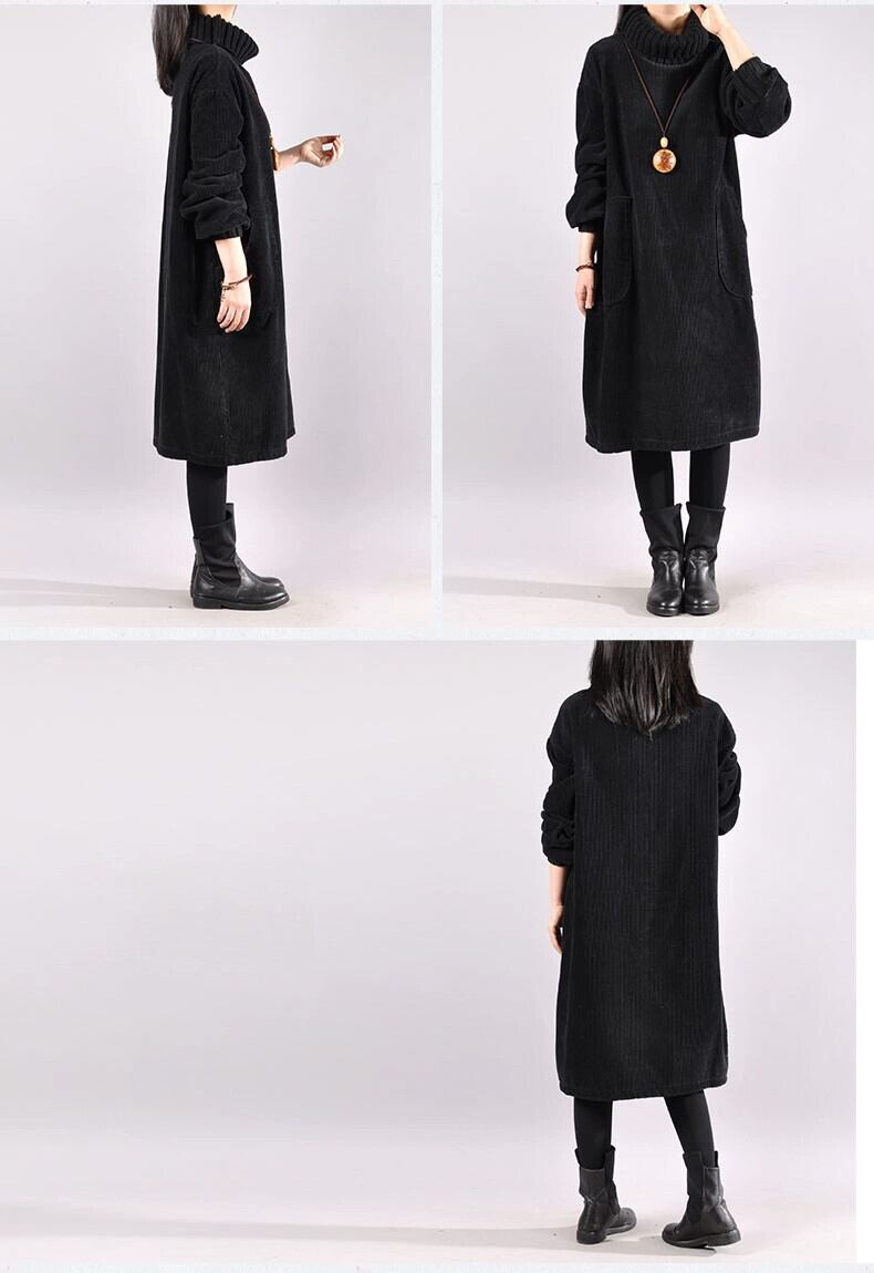 クリアランス リーク ese オリジナル シングル コーデュロイ ドレス レトロな大きなポケットとベルベットの厚みのあるハイカラー コーデュロイ ミドル丈スカート sine82774915004