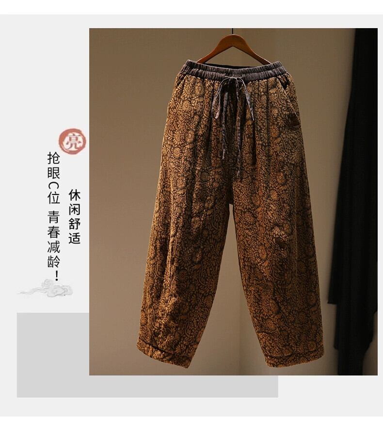 eign trade counter ブランドテールグッズエスニックスタイルプリントハーレムパンツ女性弾性ウエストカジュアルキルティング肥厚アウターコットンパンツ エラスティック 伸縮 sine56797818232
