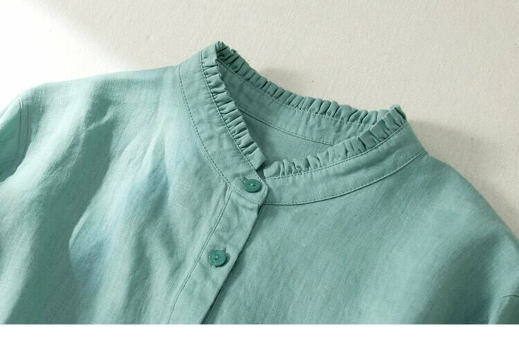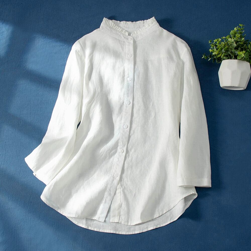 eign trade ese オリジナルビッグネーム撤退レディースシンプルコットンリネン長袖シャツルーズシングルブレストリネンスタンドアップカラートップ ロング sine83373444752
