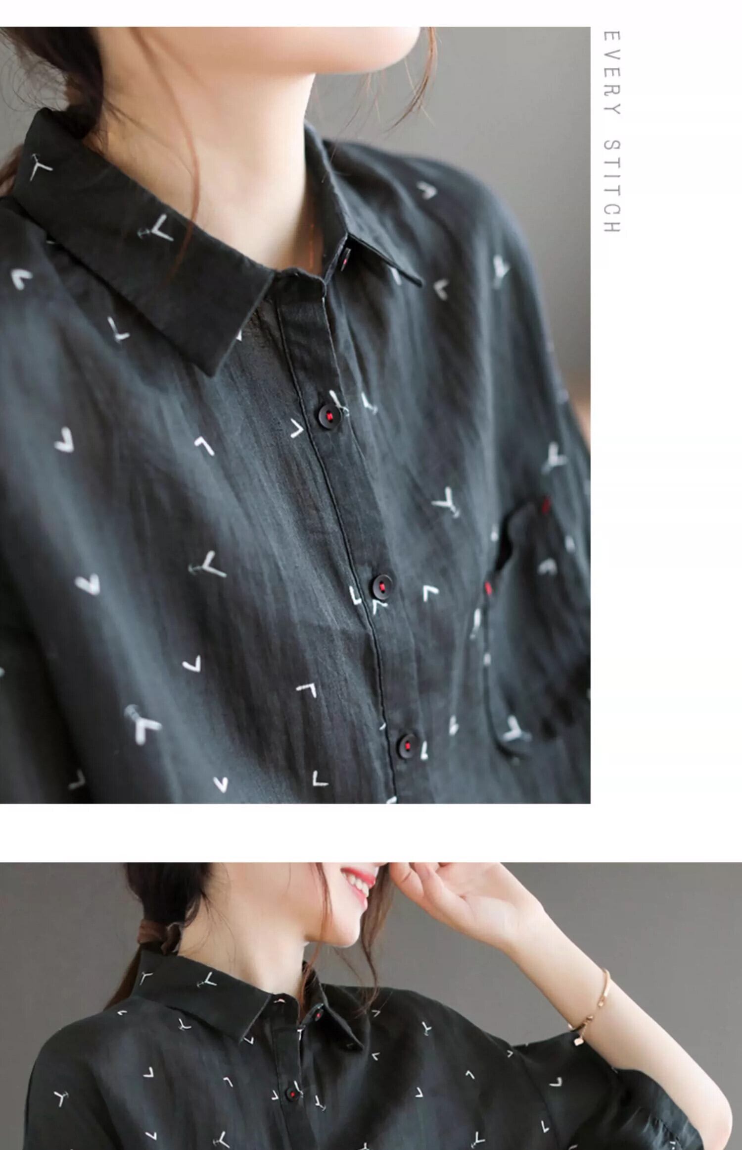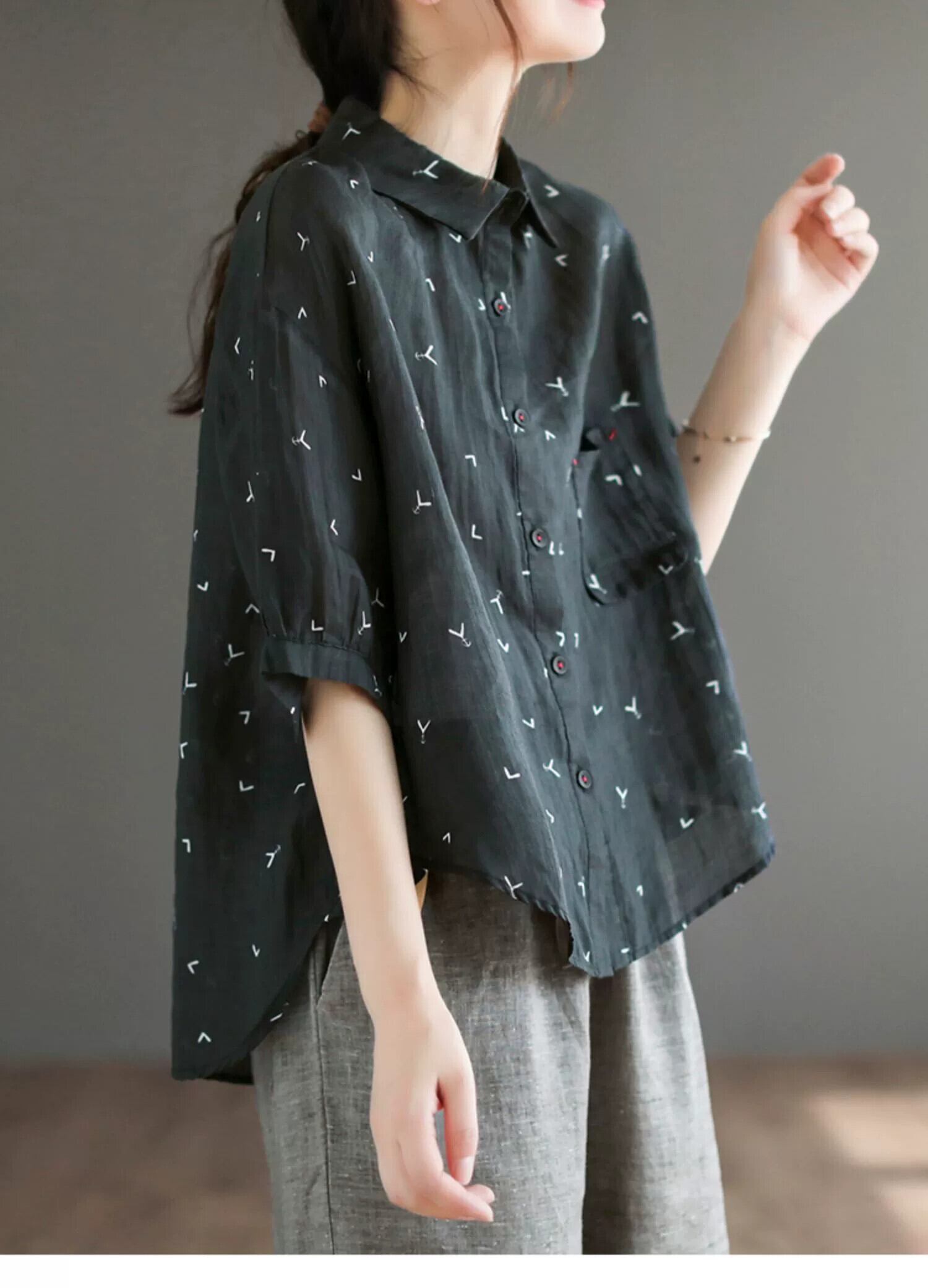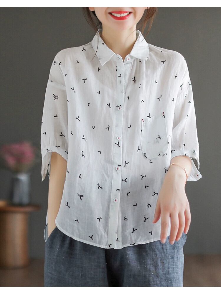 ディスカウント ストア ショッピング モールの女性のカジュアル プリント コットンとリネンの半袖シャツ、ルーズで軽いラペルのリネン トップス sine32637096590