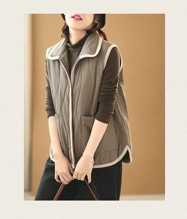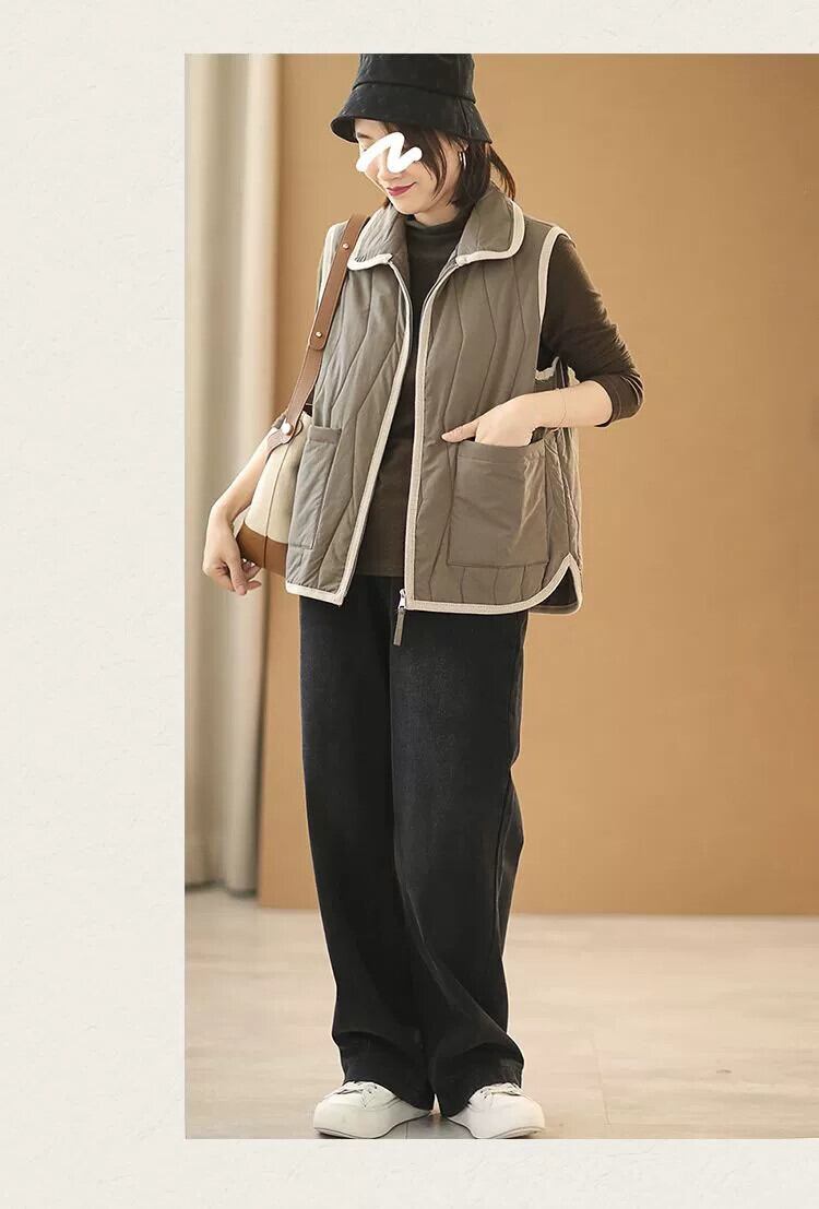 キャビネットから撤去された第一線ブランド eign trade、レディース レトロ チョッキ、ライトダウン コットン コート、ルーズ スタンドカラー ベスト、ベスト、中綿入りジャケット sine29809216086